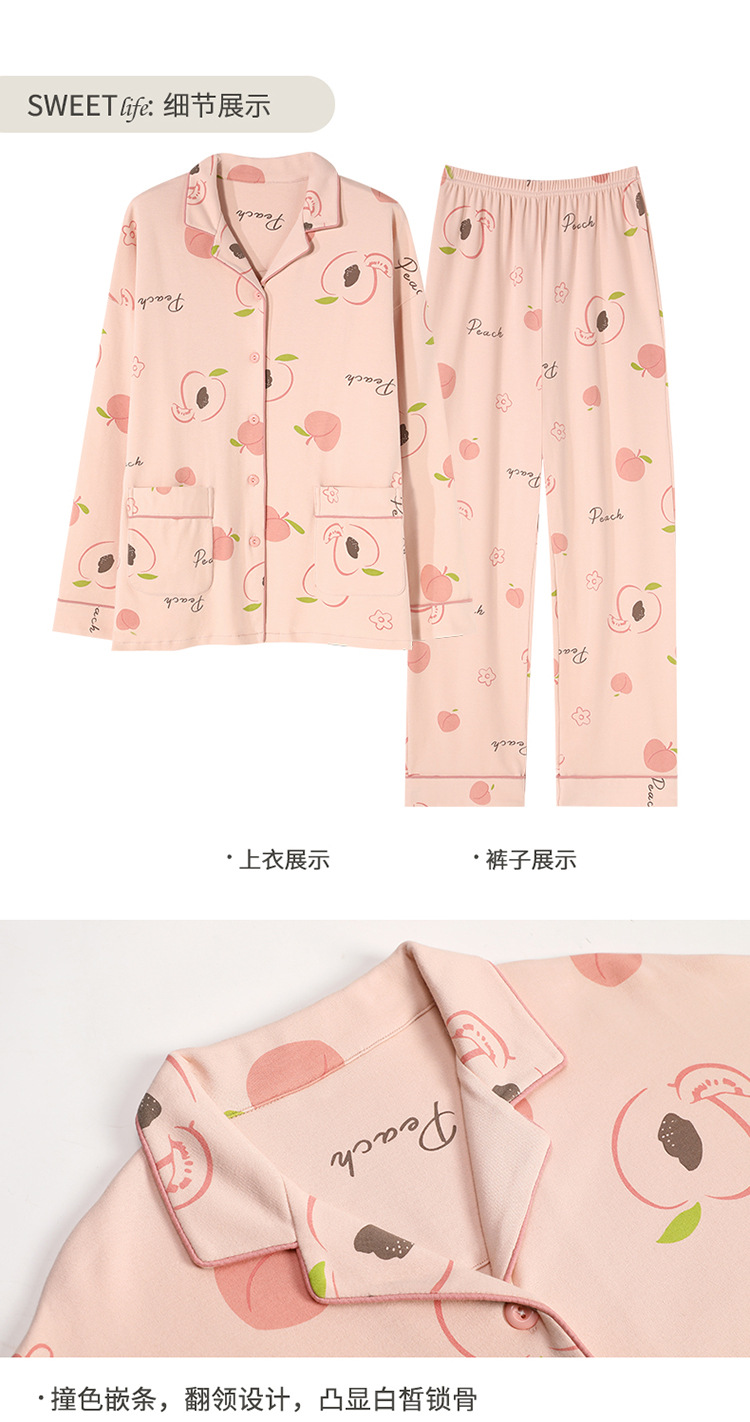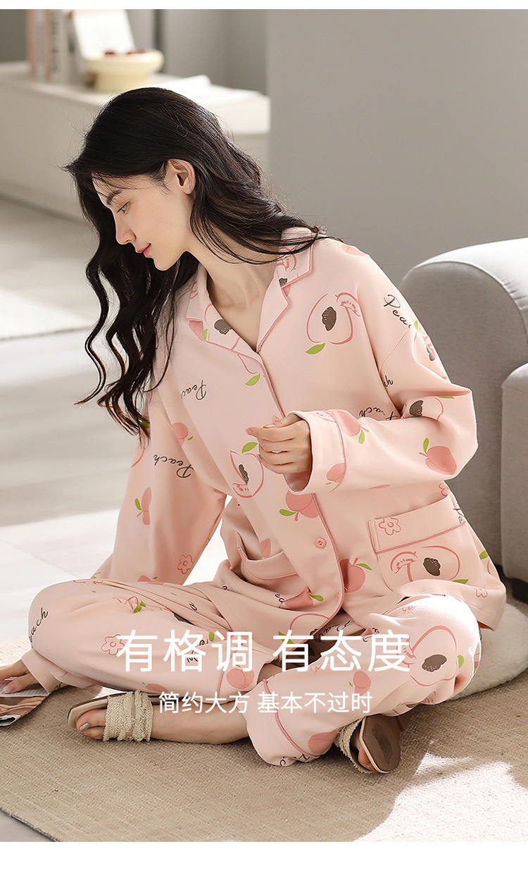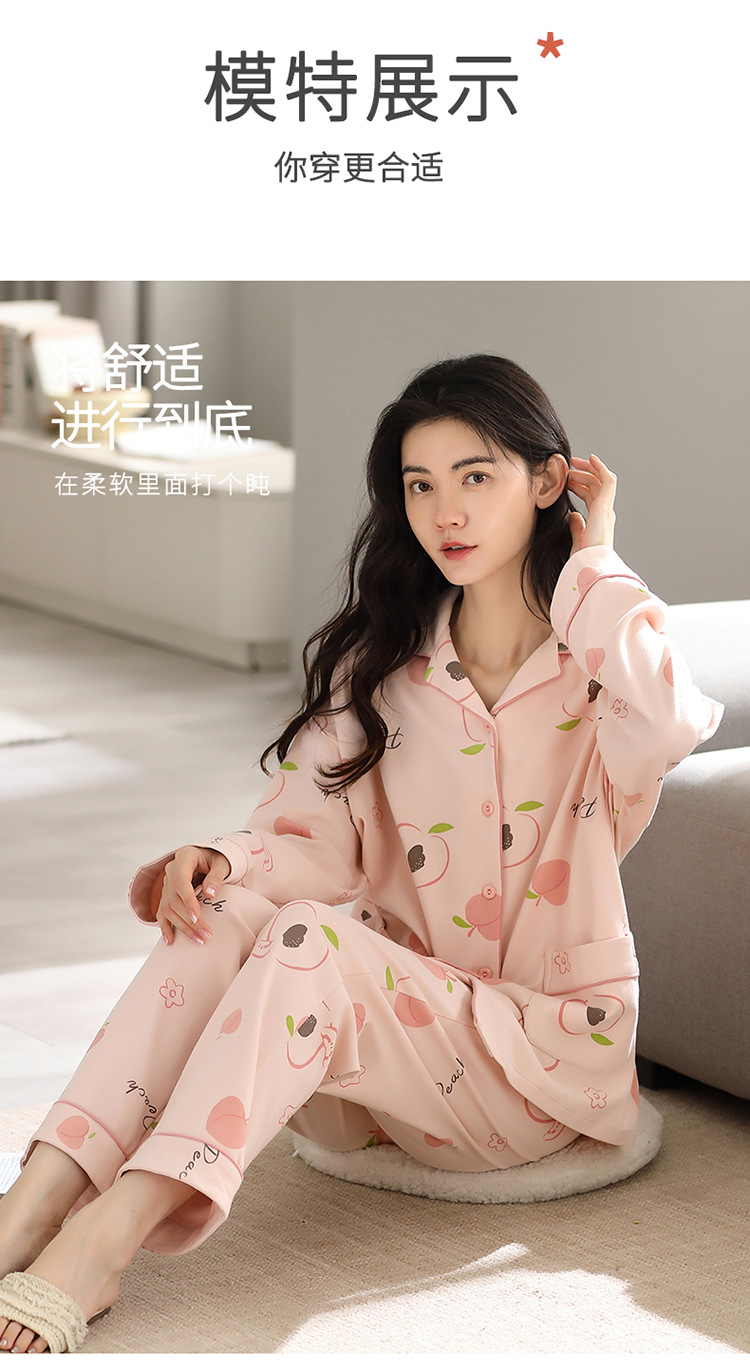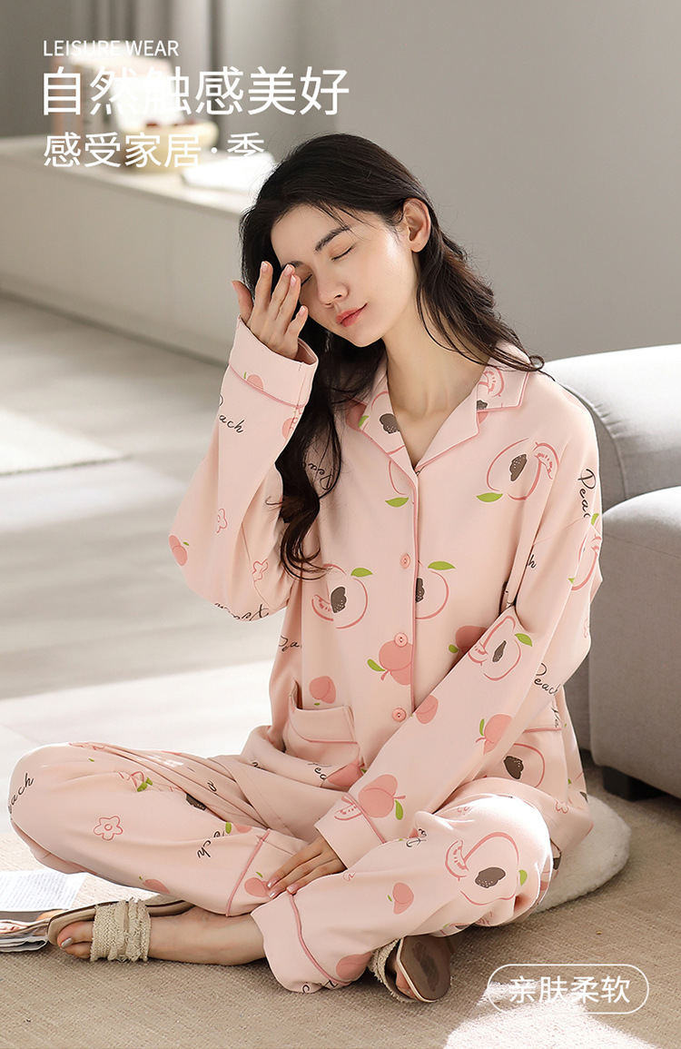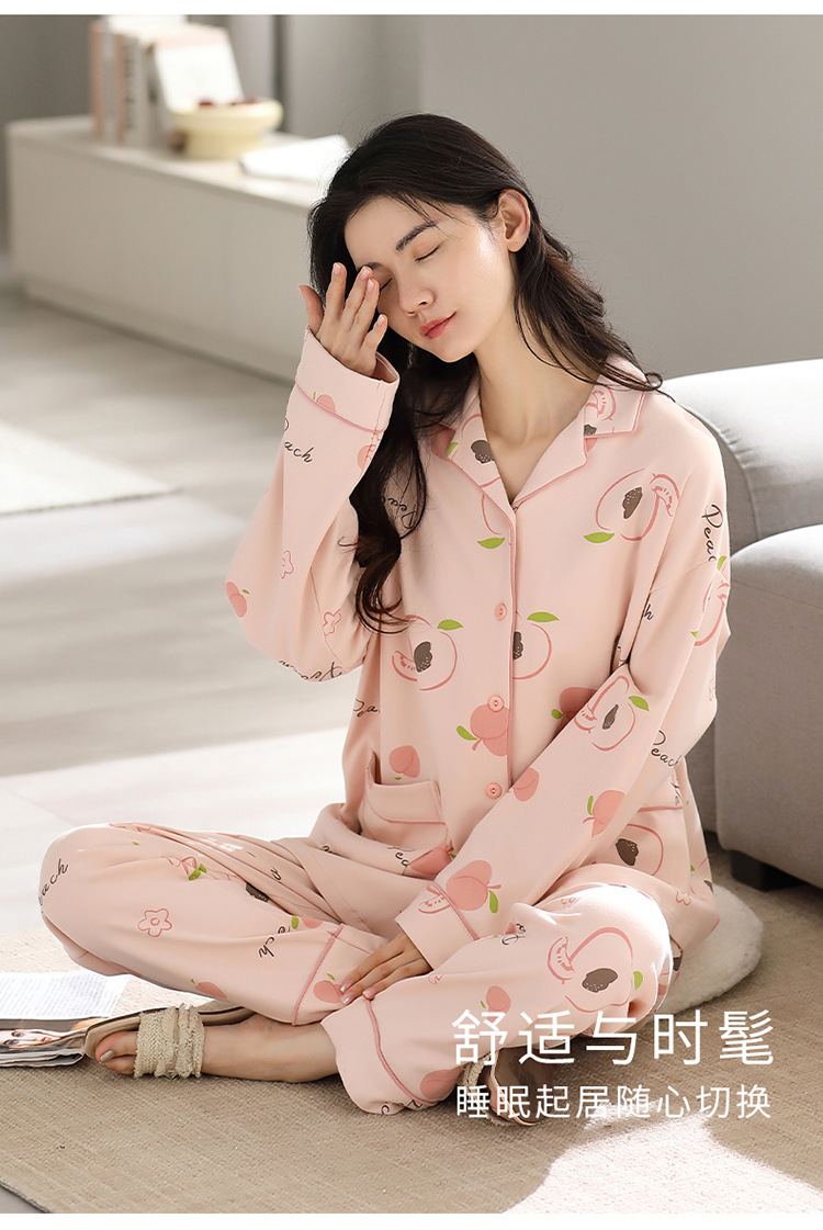 純綿パジャマレディース春秋新作折り襟長袖長ズボンゆったりカーディガン純綿甘美ホームウェアセット