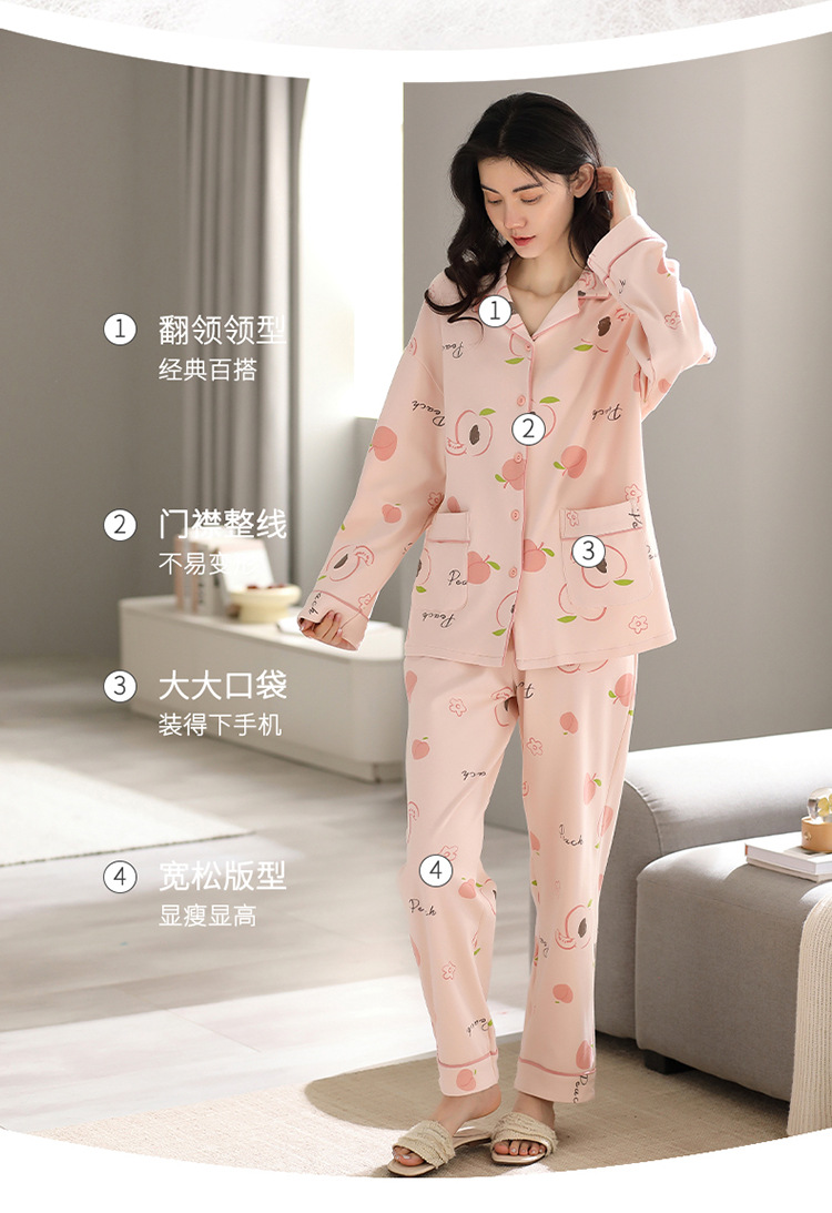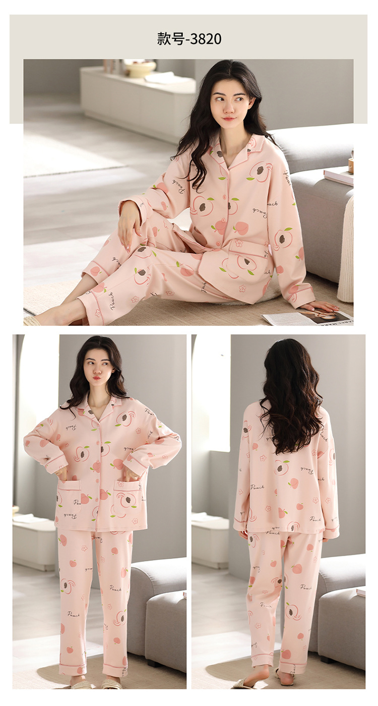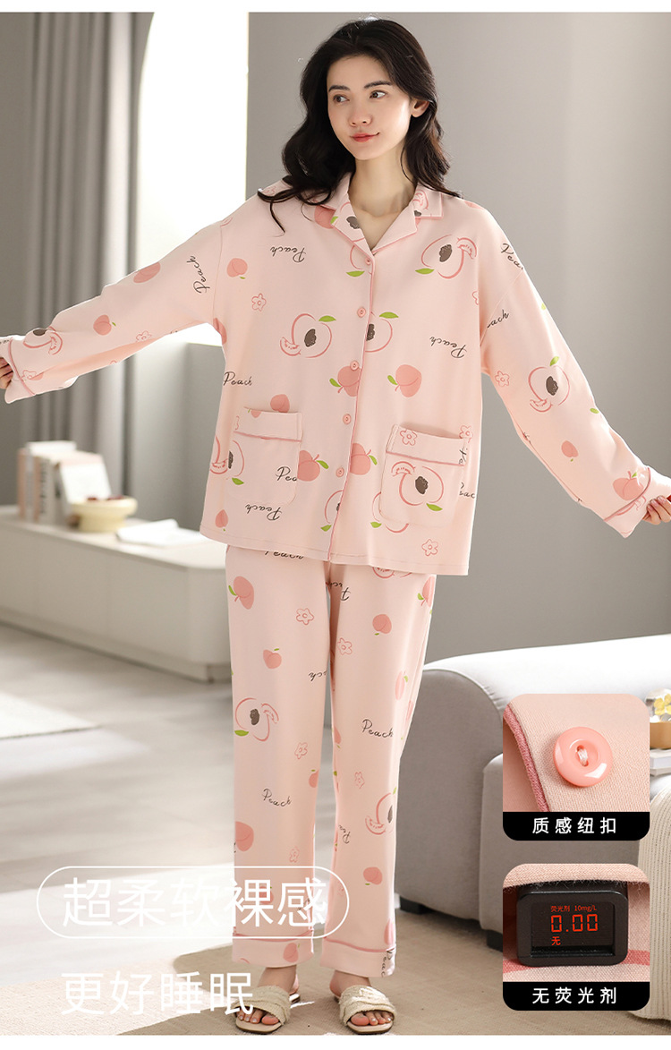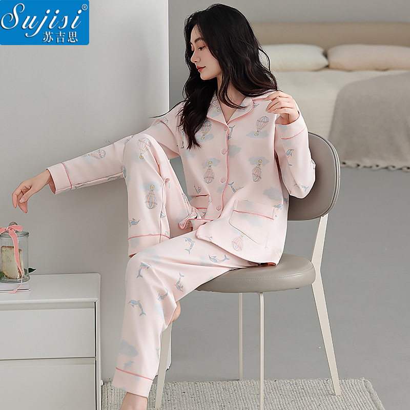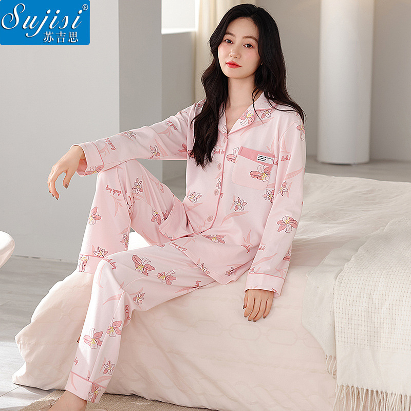 レディース純綿パジャマ秋冬新作長袖シンプルカーディガンプリントカジュアル大きいサイズホームウェア少女スーツ