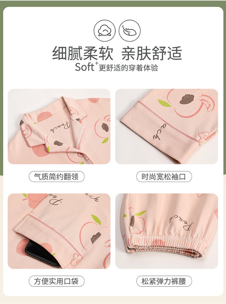 純綿のパジャマの女性は秋に純綿の長袖を着ることができます。