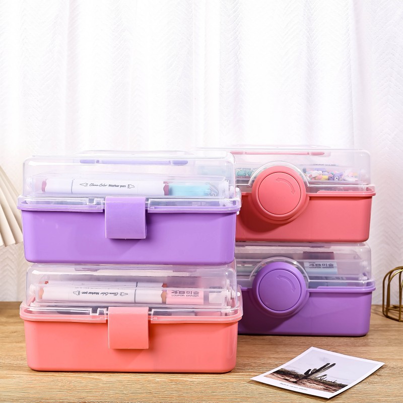メーカーポータブル透明収納ボックス美術学生ツールボックス折りたたみ三層収納ボックス多機能メイクアップとネイルボックス