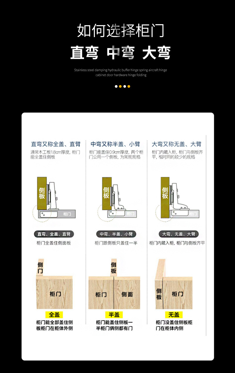 メーカー直供厚3.0ステンレス油圧ヒンジ重型ダンピング緩衝たんす戸棚304ドアヒンジ