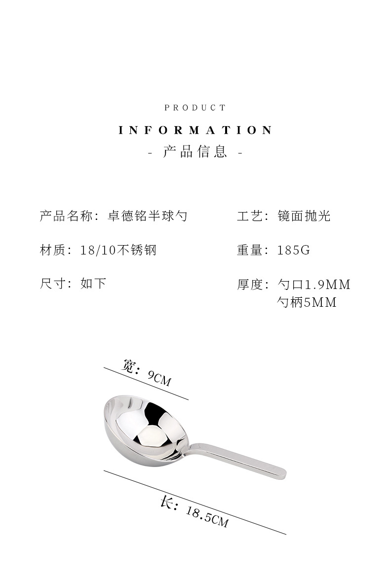 18/10不锈钢,整体镜面处理,净重206克