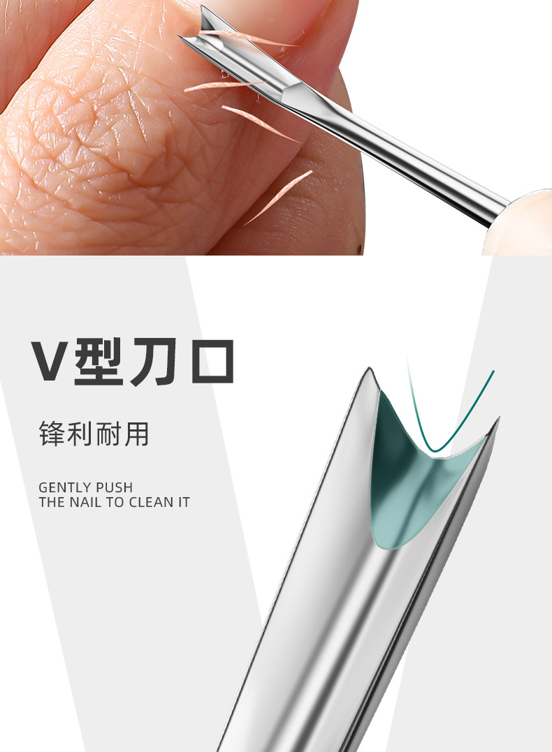 不锈钢死皮叉去死皮钢推修指甲边缘V型死皮铲斯顿指甲锉美甲工具