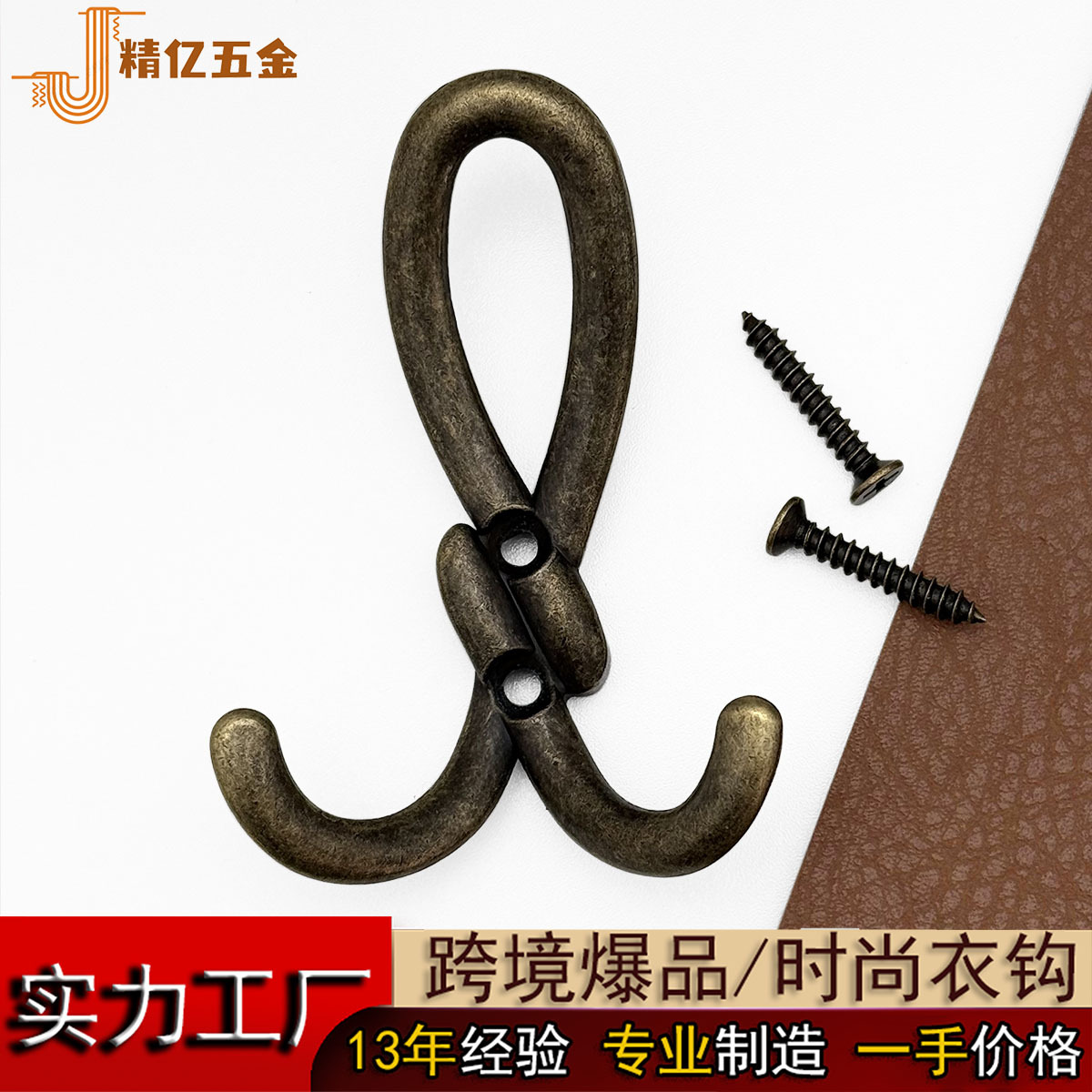 ダブルフック洋服フックレトロ亜鉛合金フックヨーロッパ壁画クリエイティブ洋服フックキャビネットワードローブ金属壁掛け