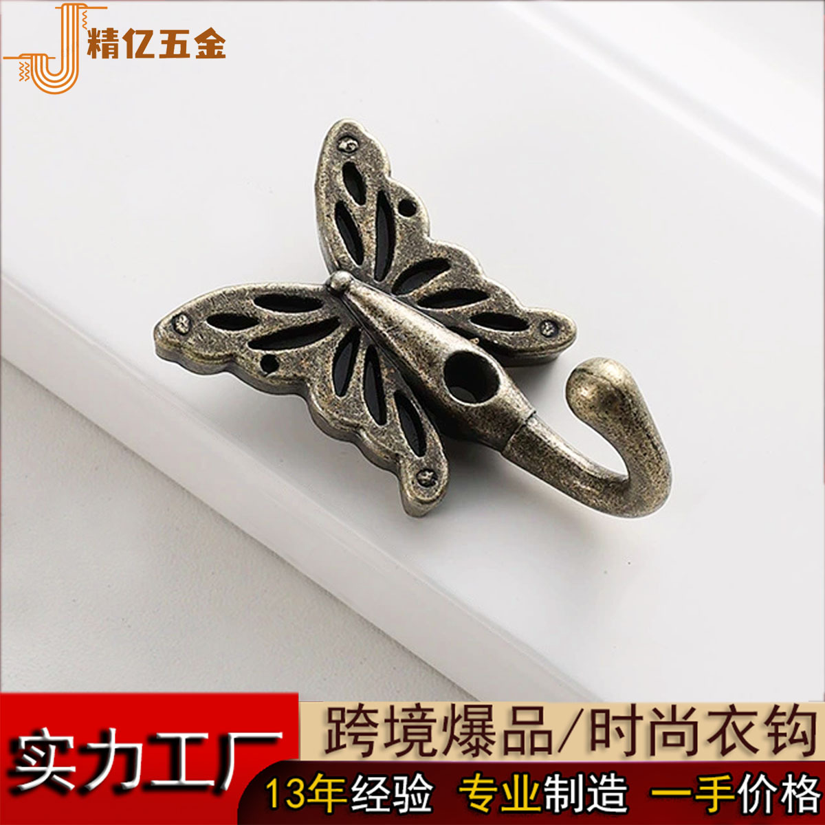 精億金属レトロ蝶服フックヨーロッパ風アンティーク壁画フック戸棚たんすシングルフックレトロ合金フック