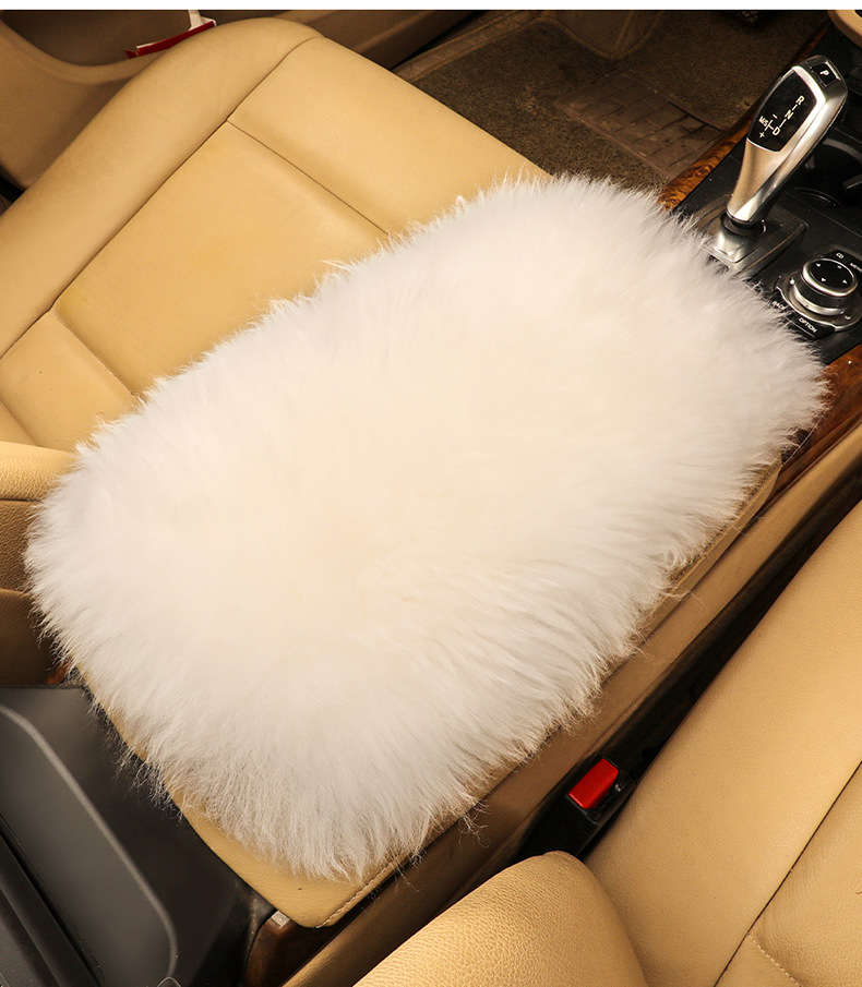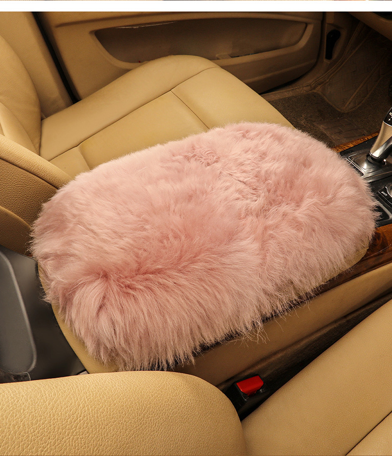 純粋なウールの自動車の手すりの箱のマットの冬のぬいぐるみの手すりのマットのカバーのかわいい自動車用品の羊の皮の中央の手すりのマット