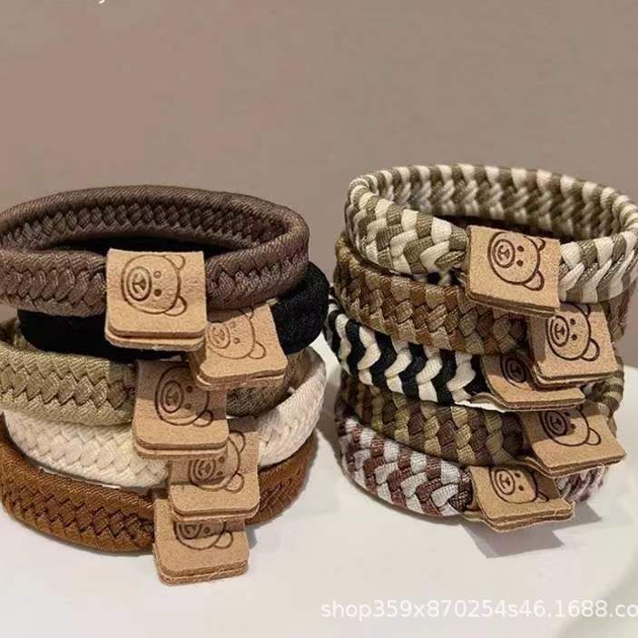 カレー色の偏平な編みの太い弾力の熊の皮の筋のシュシュはファッションの馬尾の弾力の髪ひもの髪飾りの卸売りを配合します。