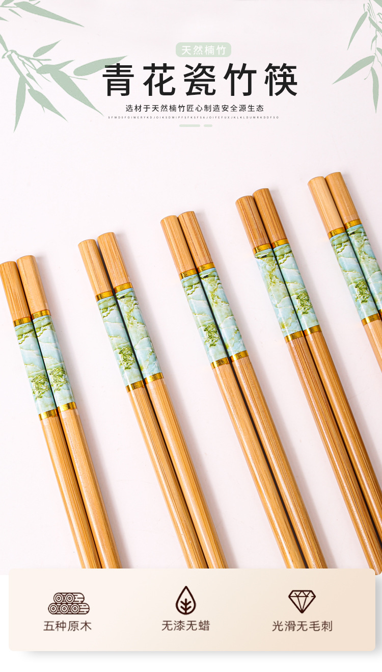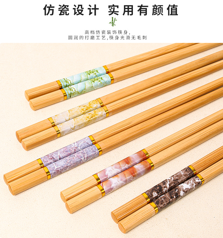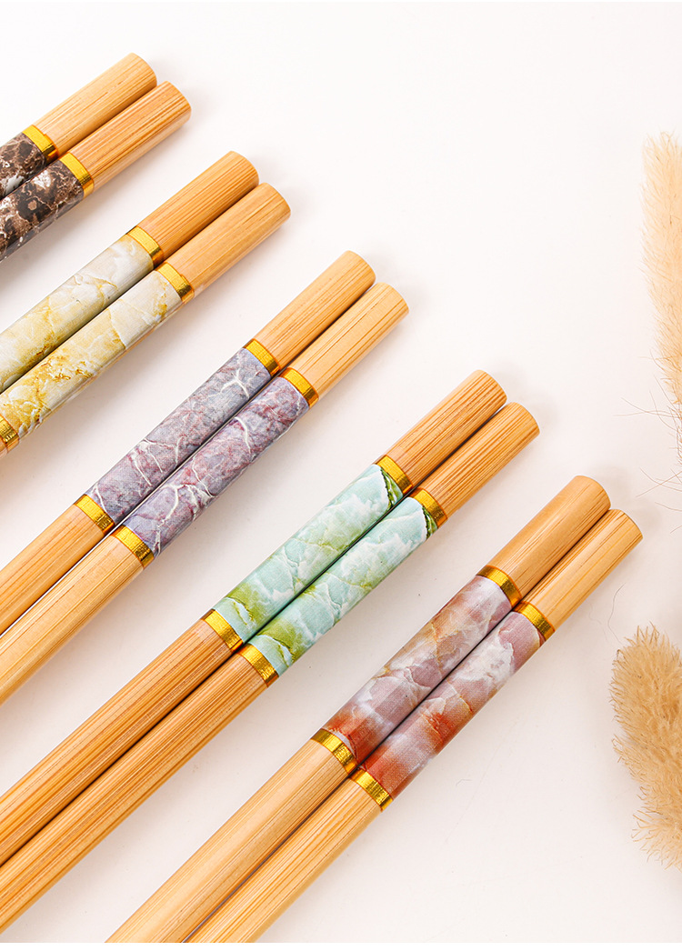 竹箸家庭用カビが生えていないセット5色大理石紋ケース高級箸一人箸ホテル箸