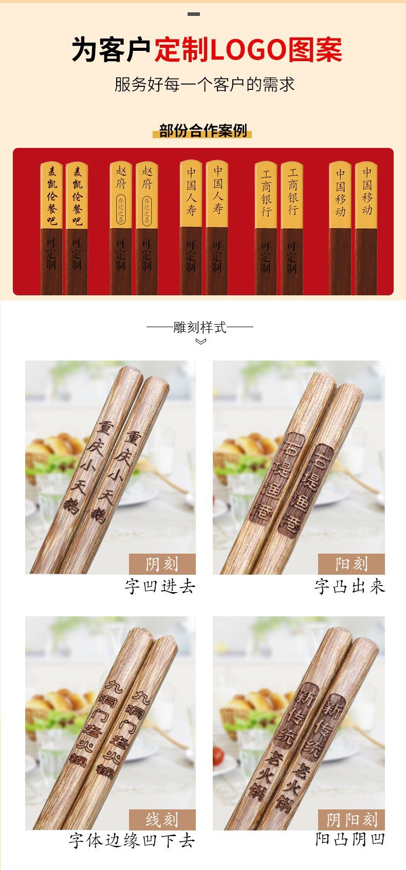 メーカー直販家庭用滑り止め鶏翅木箸紅檀児童練習日本式竹箸福字食器彫刻ロゴ