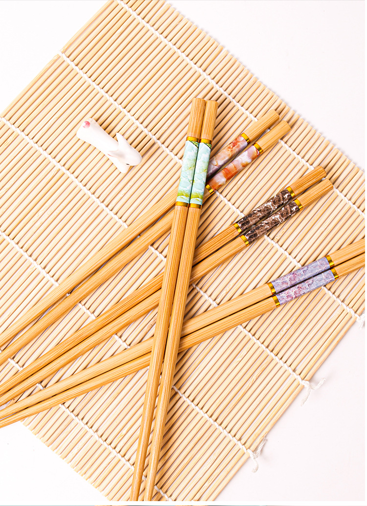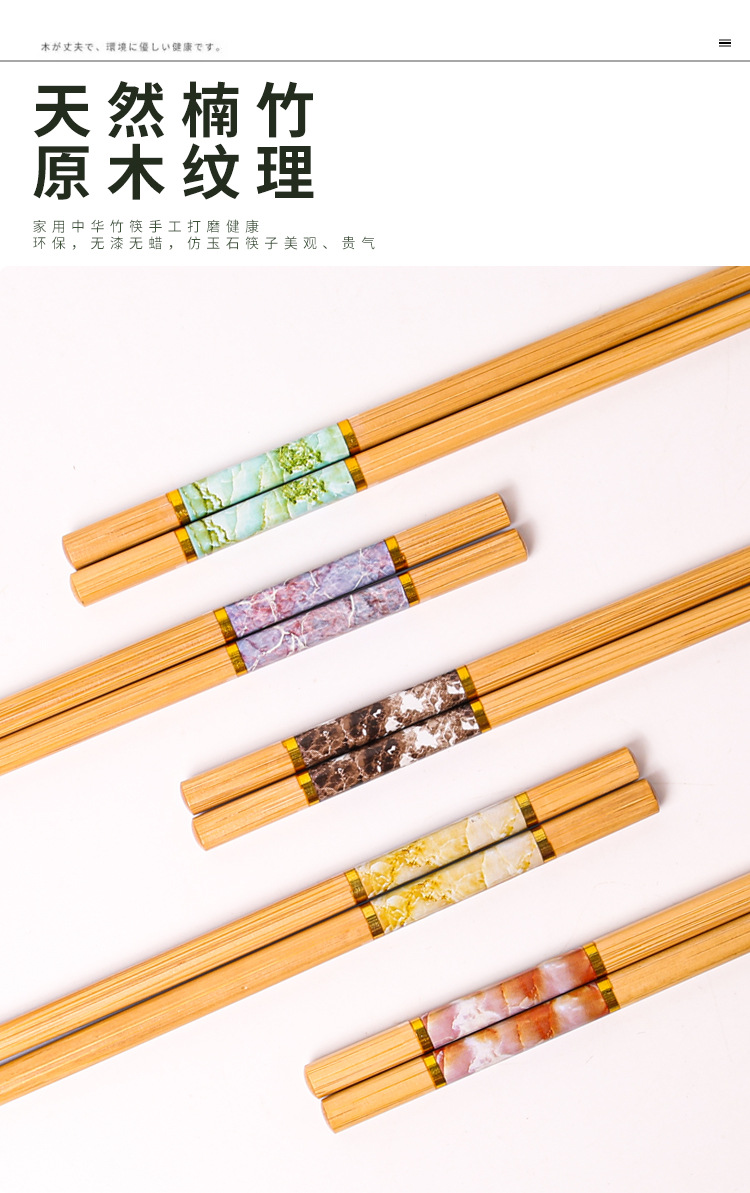 竹箸 五色大理石柄 防カビ箸 家庭用 10膳入 滑り止め 一人用 一本箸 木製箸