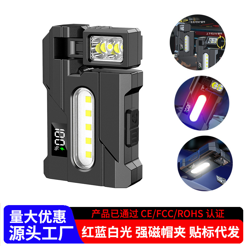 led迷你手电筒强光爆亮户外充电长续航钥匙扣灯多功能磁吸工作灯