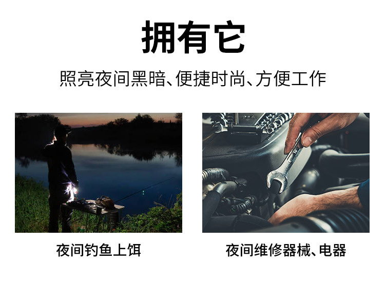 ドリルリング懐中電灯夜釣り修理照明灯手首充電強光局部照明運動屋外夜釣り灯釣り