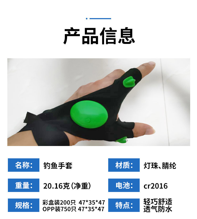 クロスボーダースポットled懐中電灯発光釣り手袋緊急修理夜釣り照明手袋指ライト