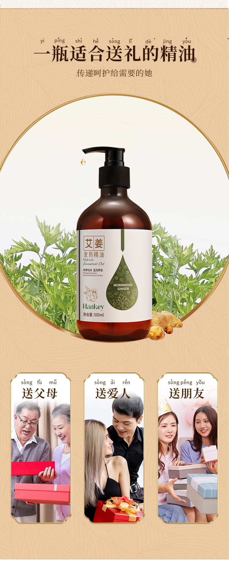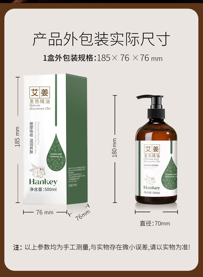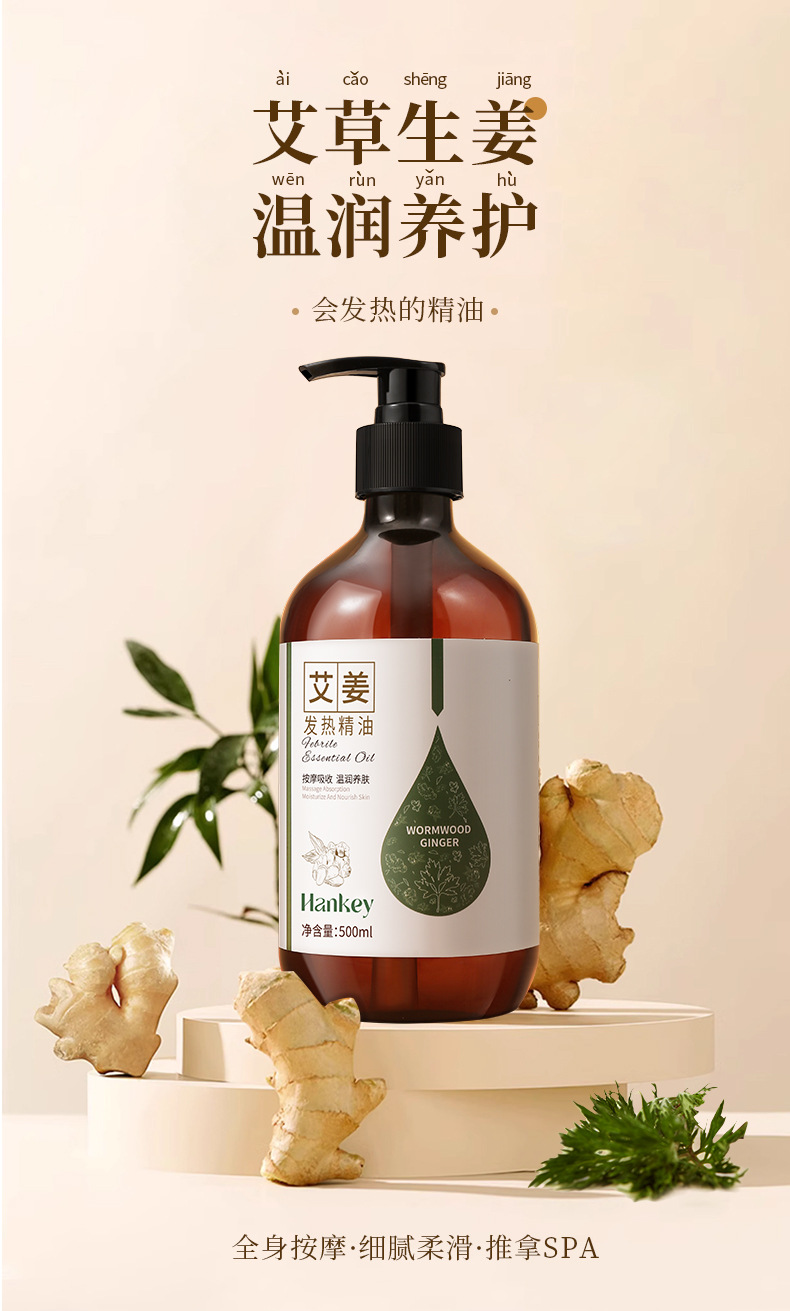 韓紀艾姜発熱マッサージ精油500ml美容院全身マッサージで肩口を掻いて発熱精油を摘み取る