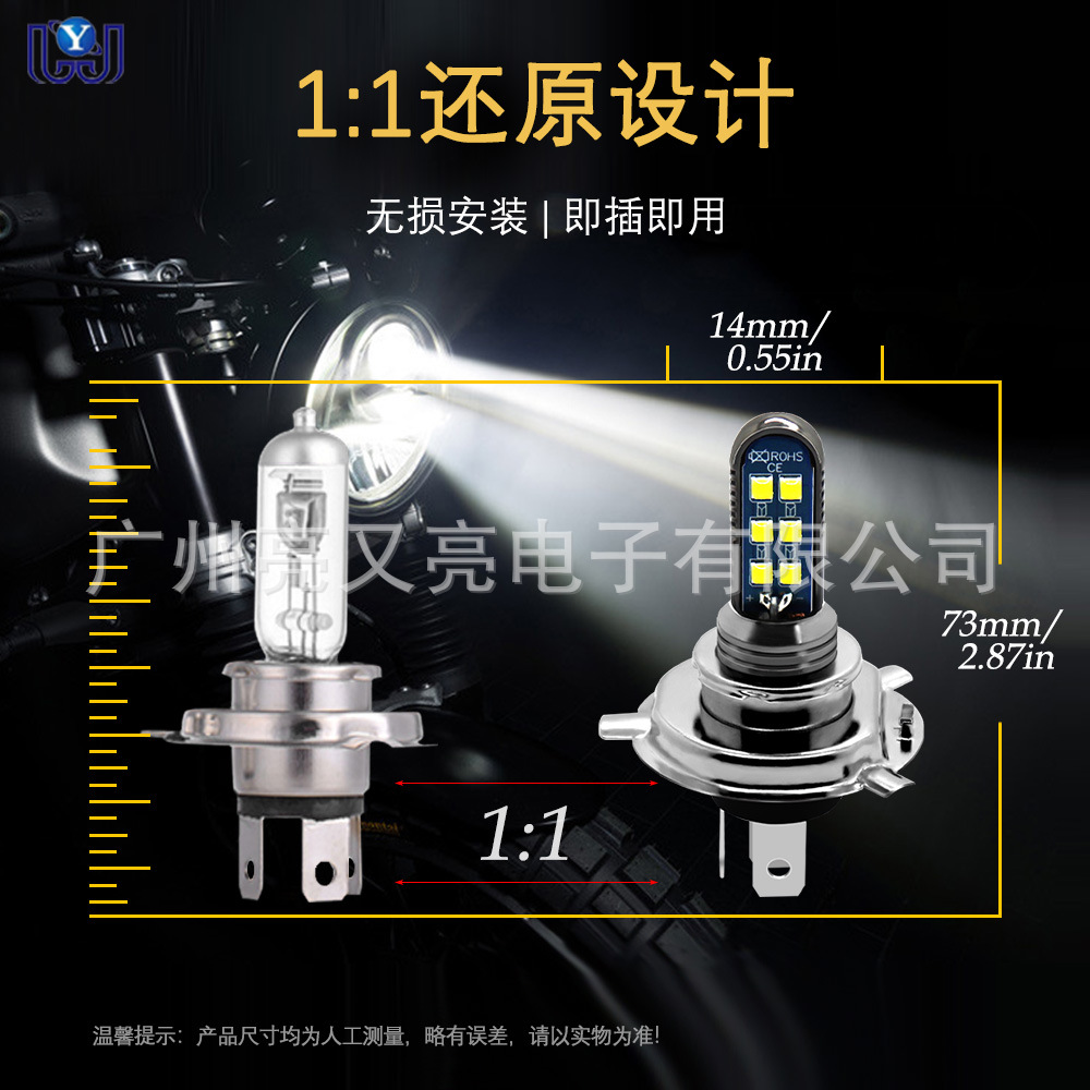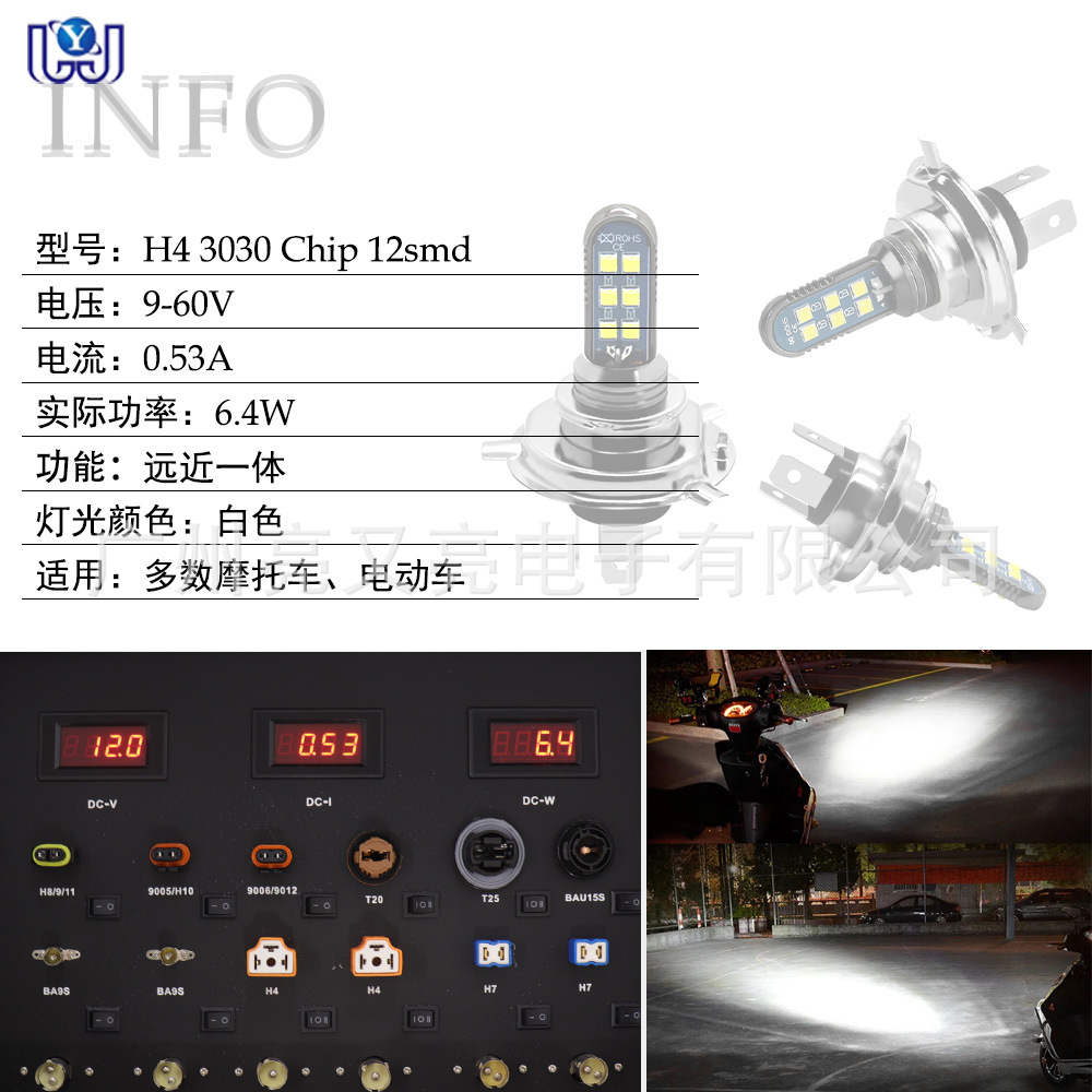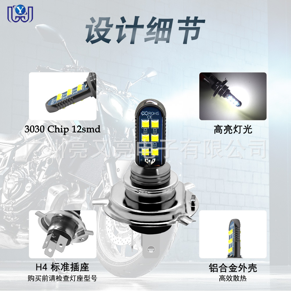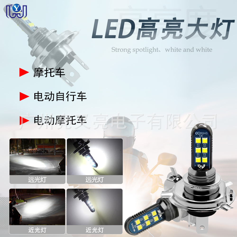 オートバイledヘッドライトh4三爪3030 12smd電気自動車ヘッドライト遠近一体ハイライトヘッドライト