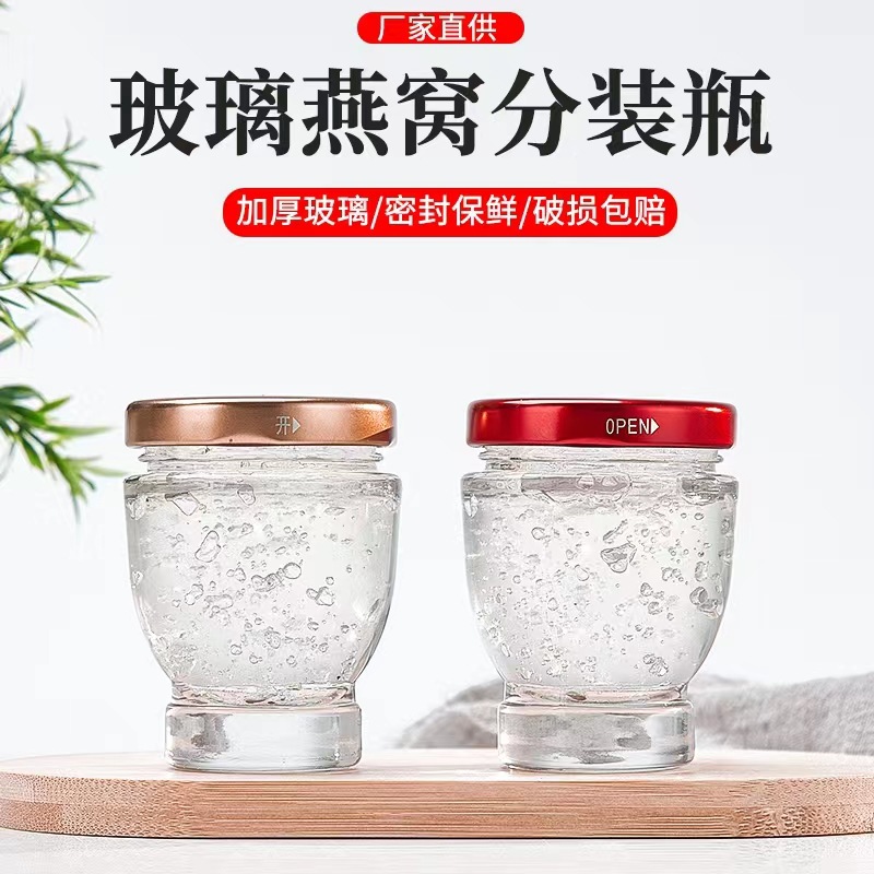 小紅書と同じスタイルのツバメの巣ボトル、食品グレードの透明なガラスボトル、すぐに食べられるツバメの巣の密封と印刷可能