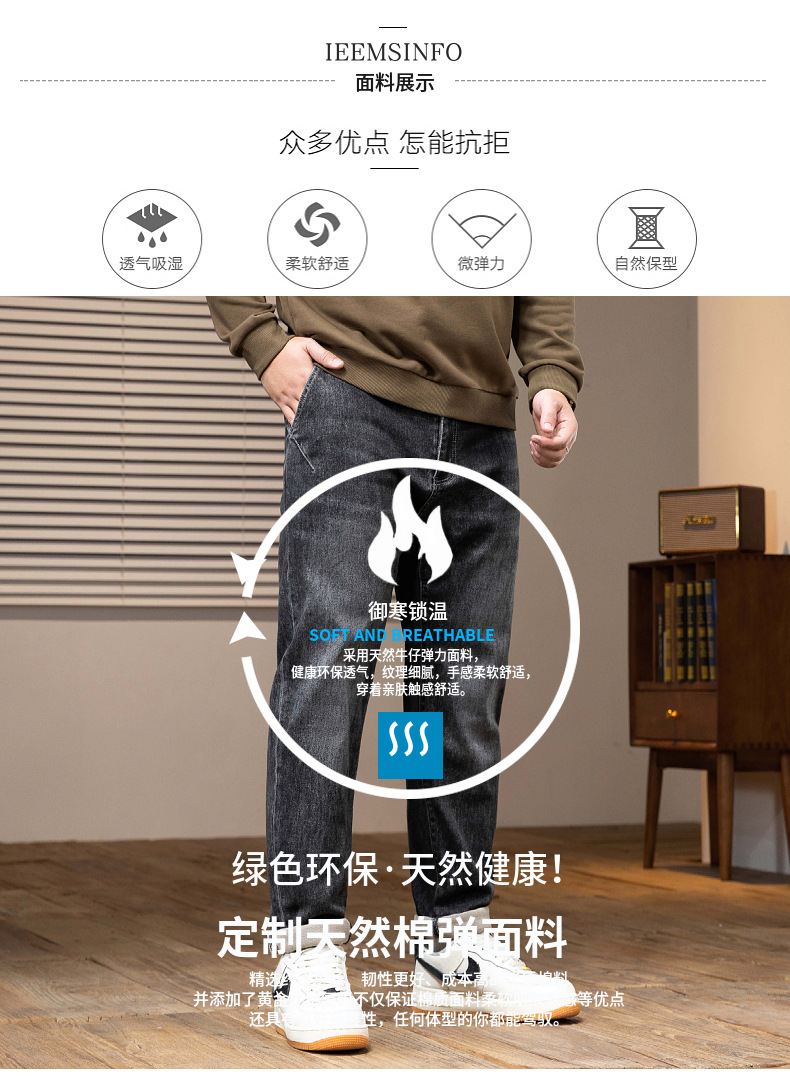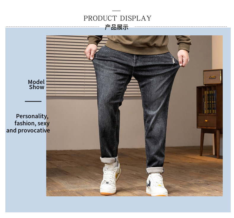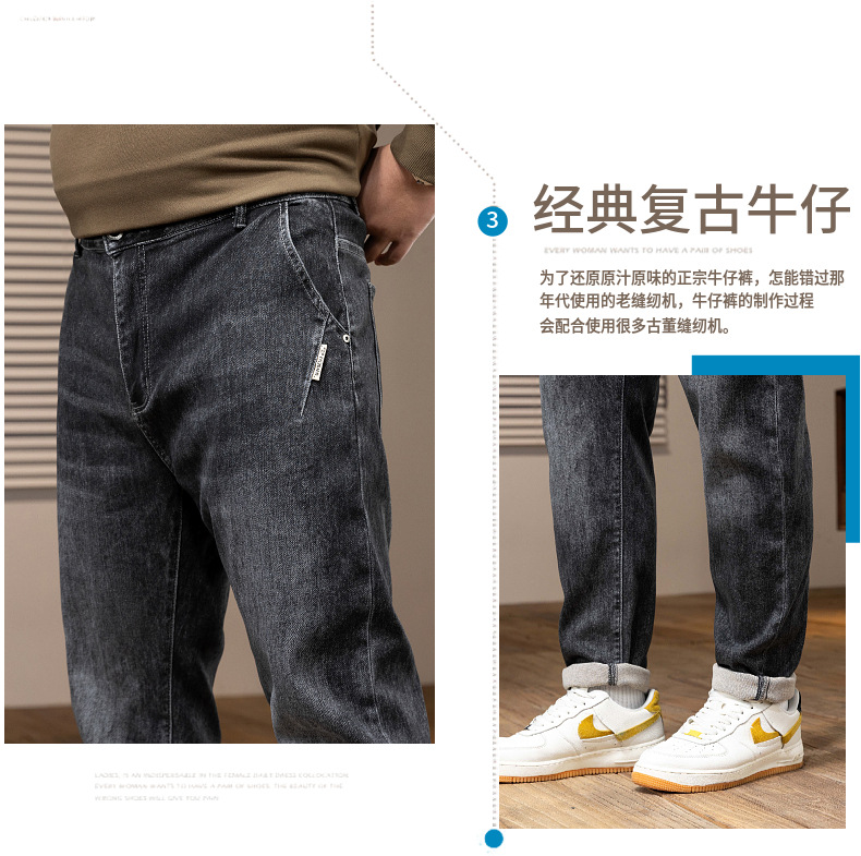 6331 | ビッグサイズの男性服秋冬の新しい大牛風レトロなジーンズ男のゆるい弾力性のあるデニムのズボン