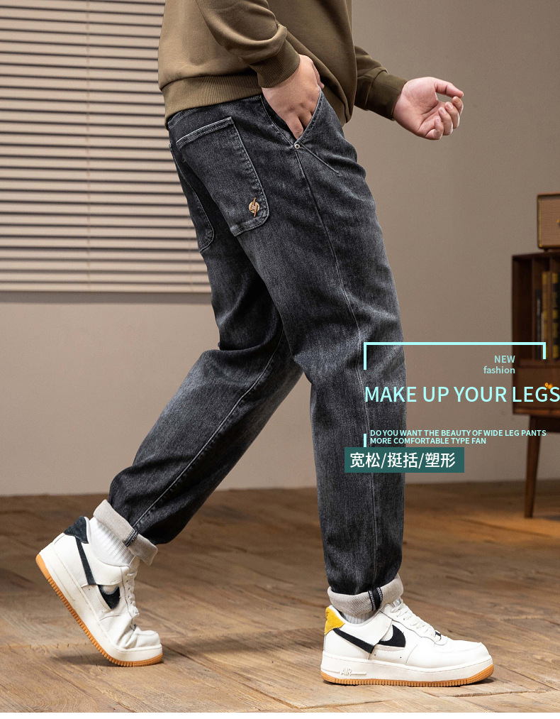 2024年秋新作 メンズストレッチデニムパンツ 韓国風ルーズハーレムパンツ 大きいサイズ メンズファッション トレンド ワンピース発送