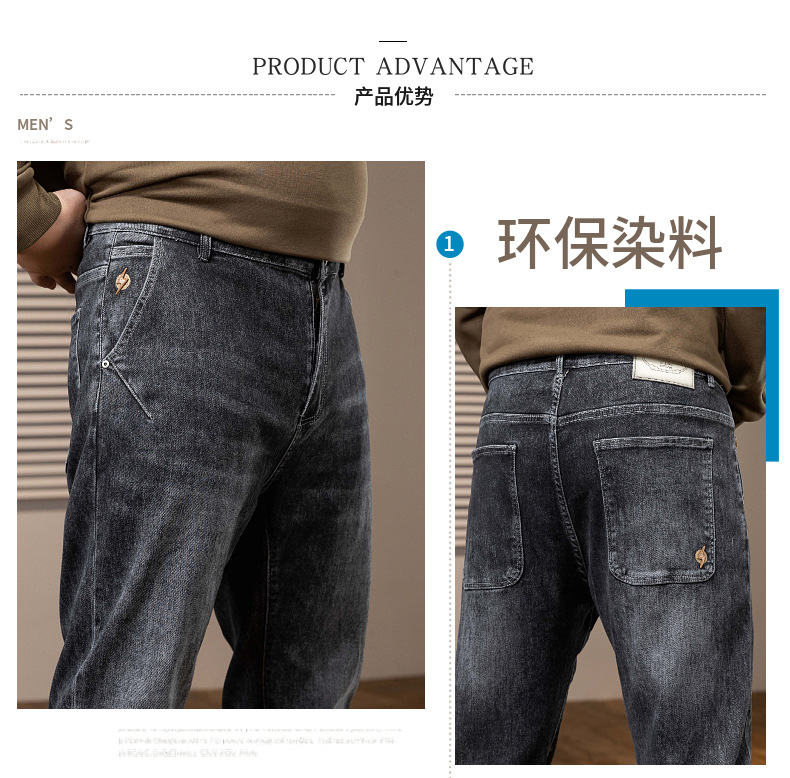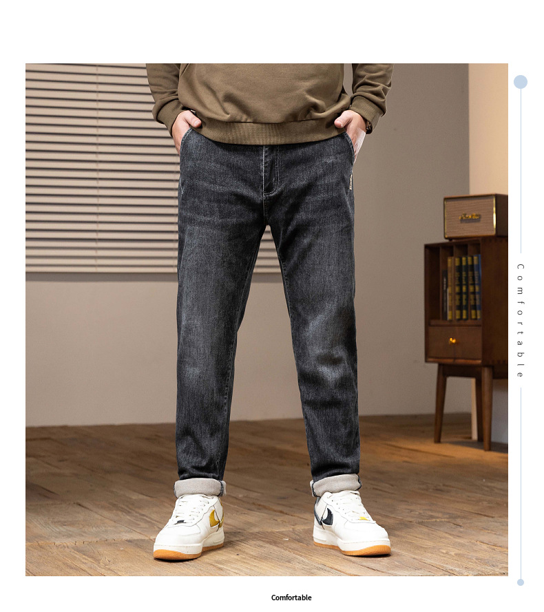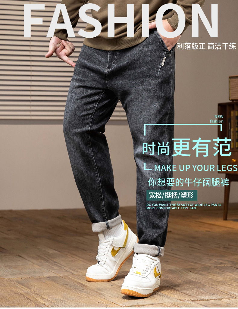 8607 | 大きいサイズの男性服秋冬新商品弾力ジーンズ男ゆるいレトロ百合カジュアルストレート長ズボン