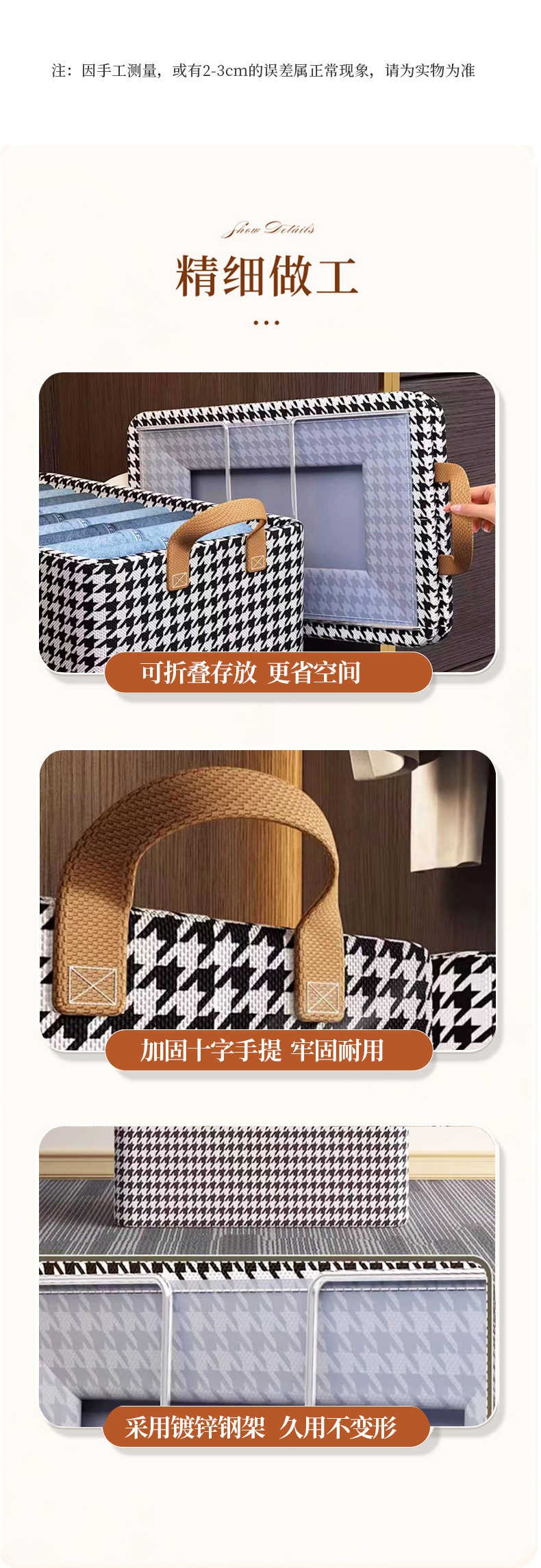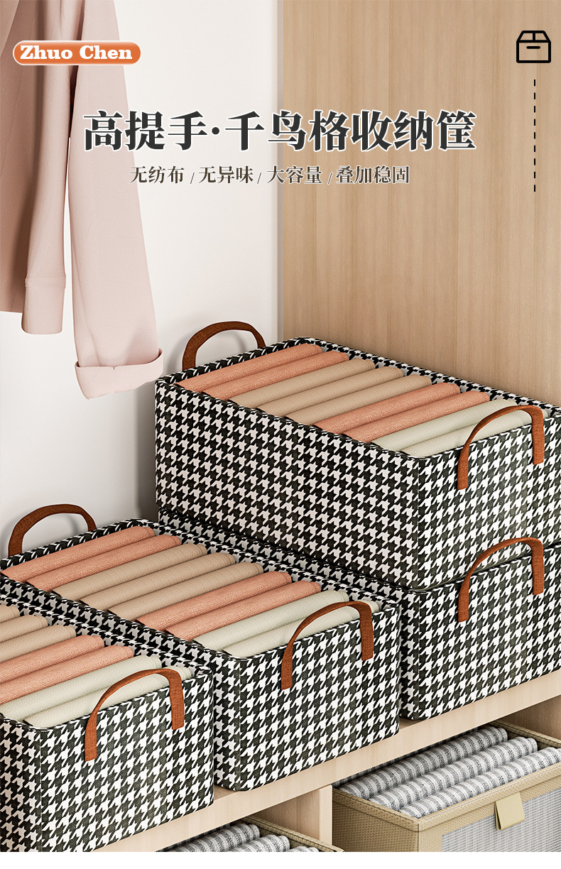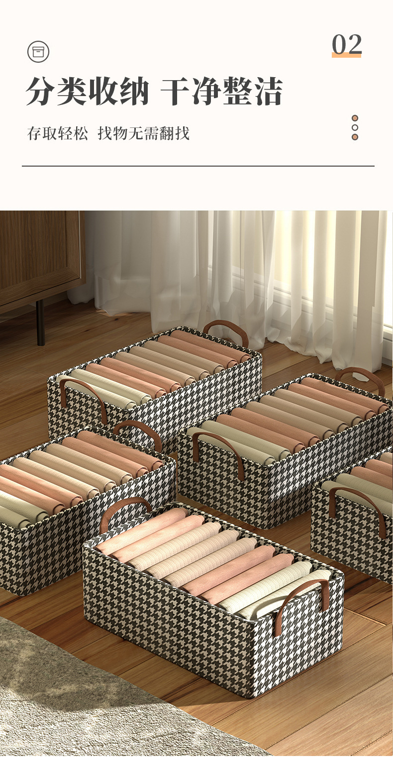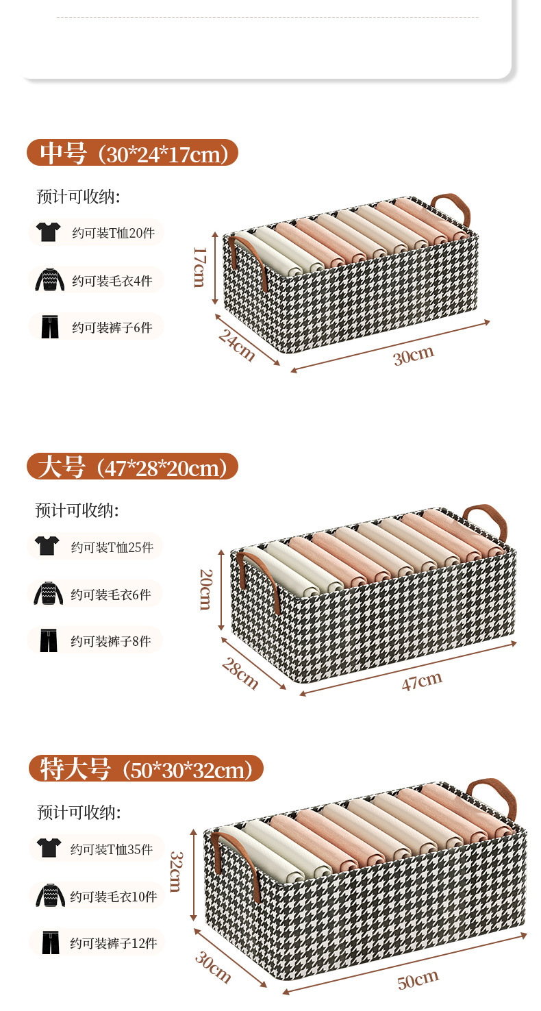 千鸟格衣服收纳箱神器分格家用衣柜抽屉式裤子衣物布艺带盖整理盒