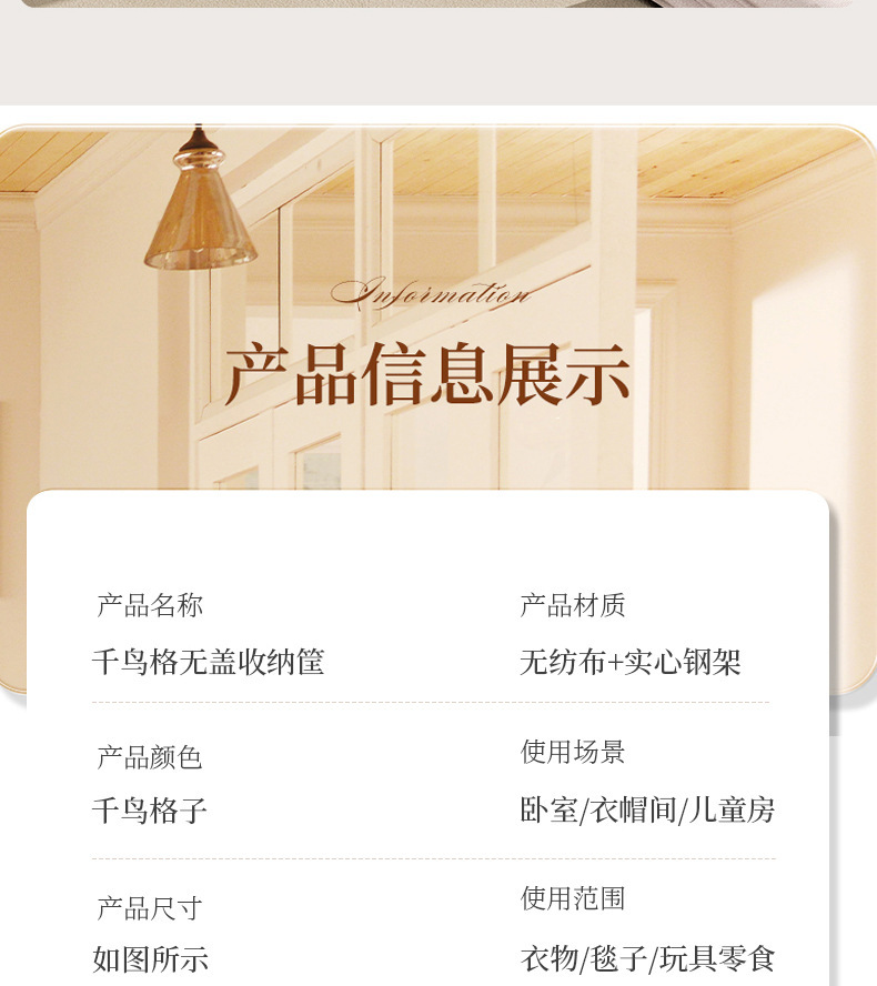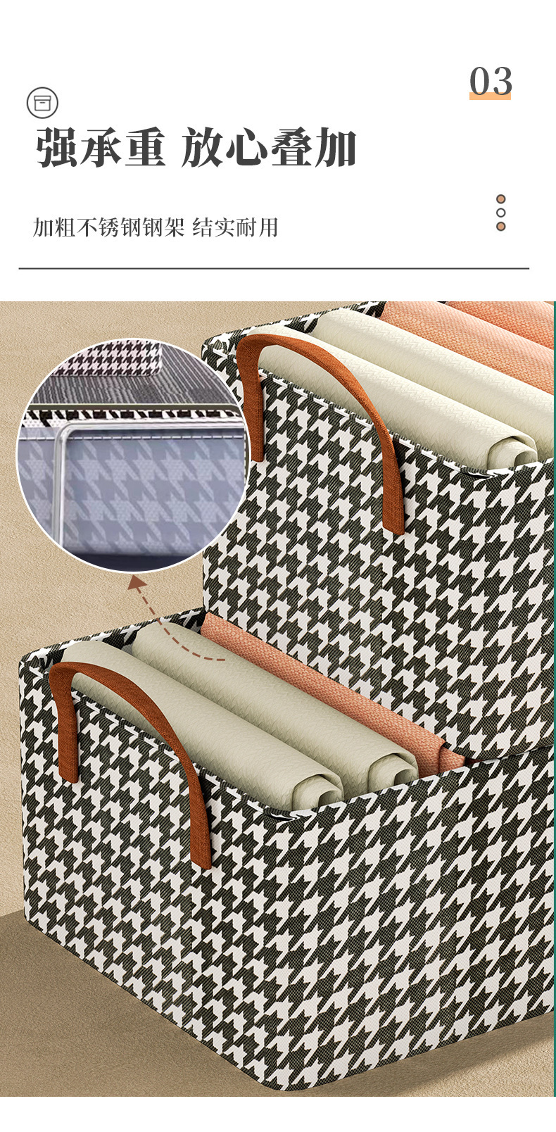無蓋千鳥格鉄骨収納バスケット折り畳み可能大容量家庭用たんすズボン衣類整理ケース