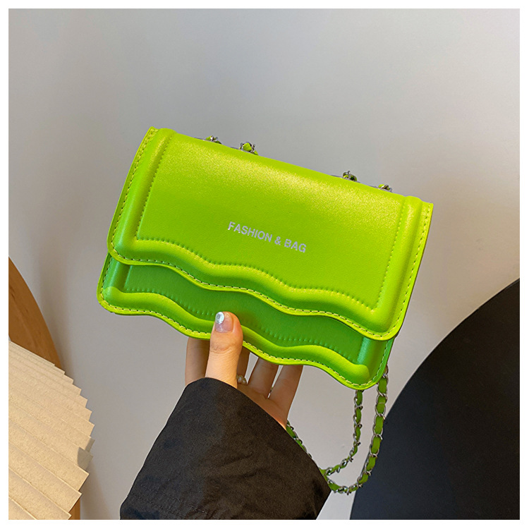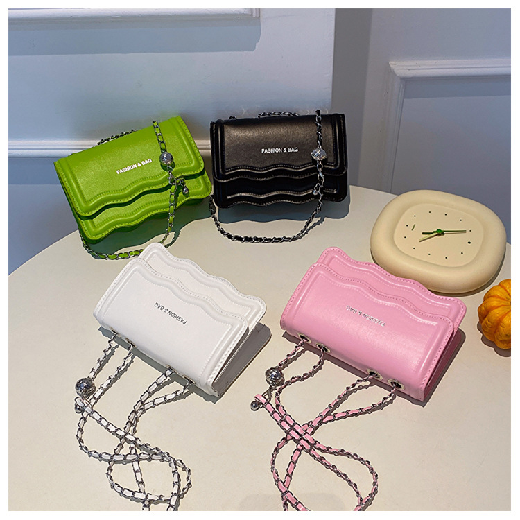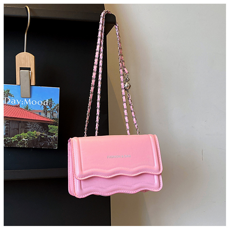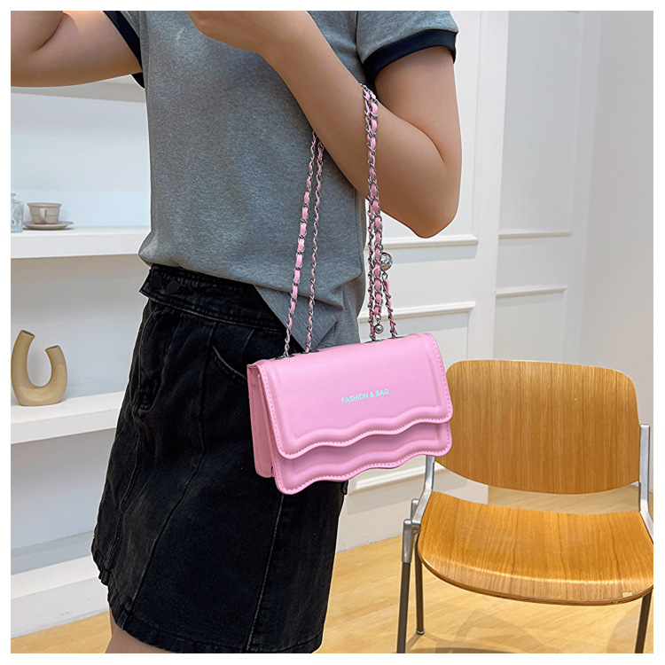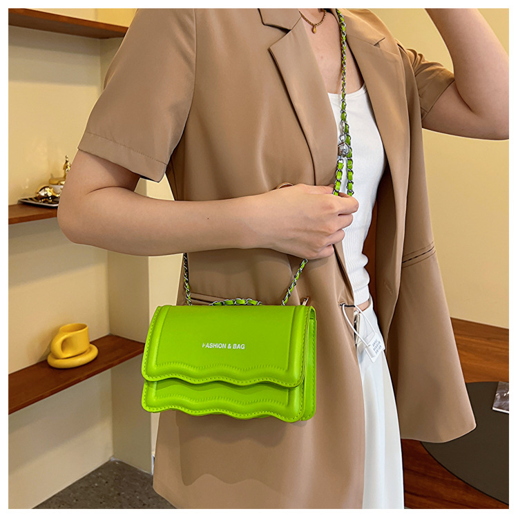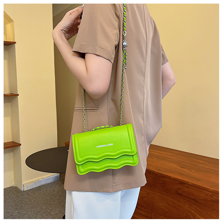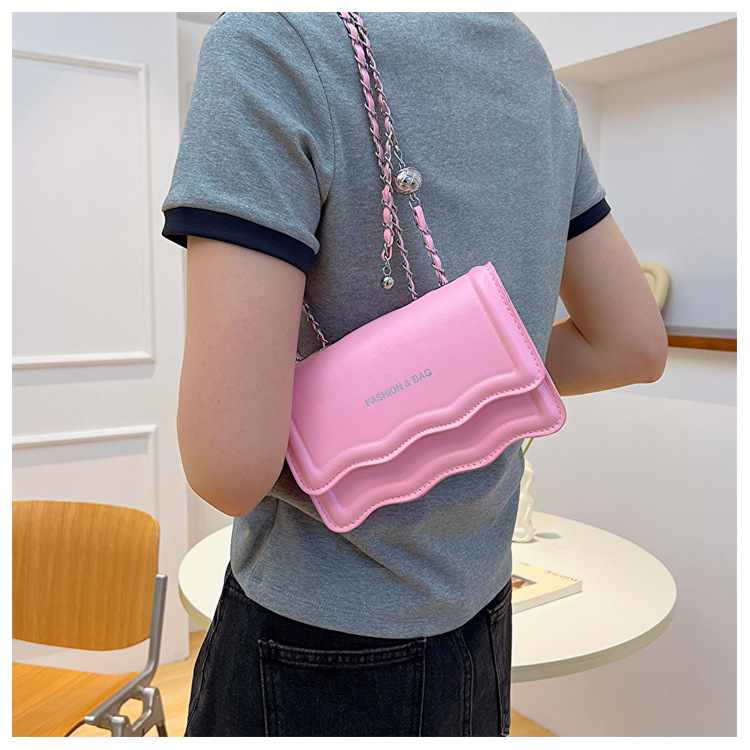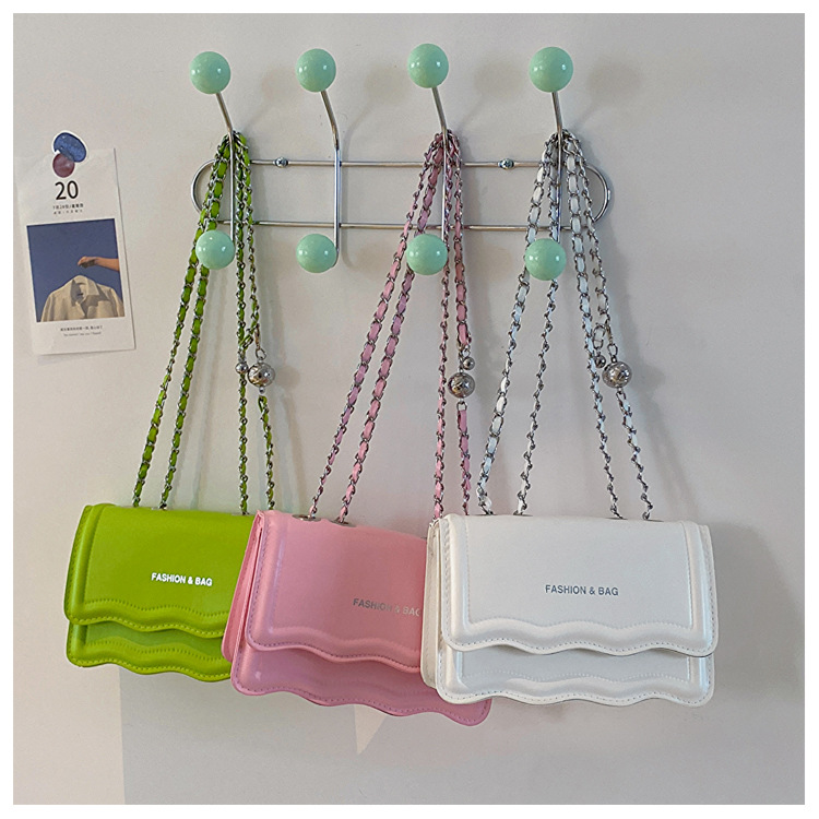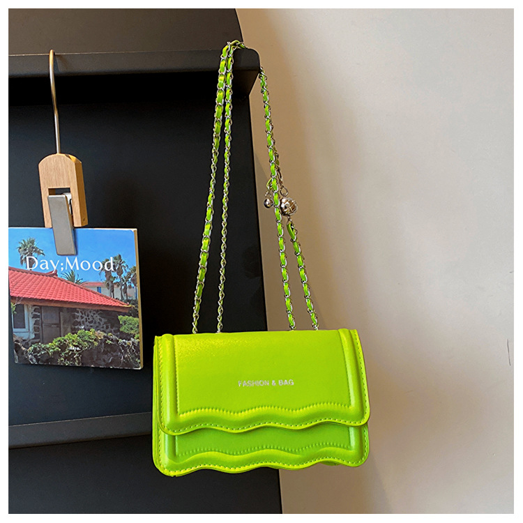 波の紋様のファッションの質感はシンプルで純色のチェーン2023夏の新型のキャンディー色のシングル肩の斜め掛けの小さい方の包みの女性です。