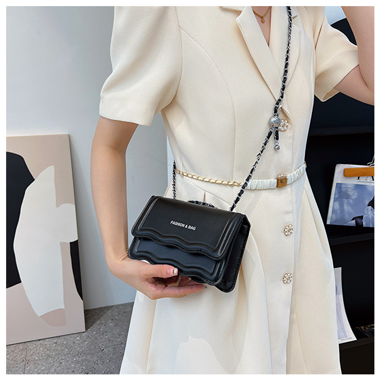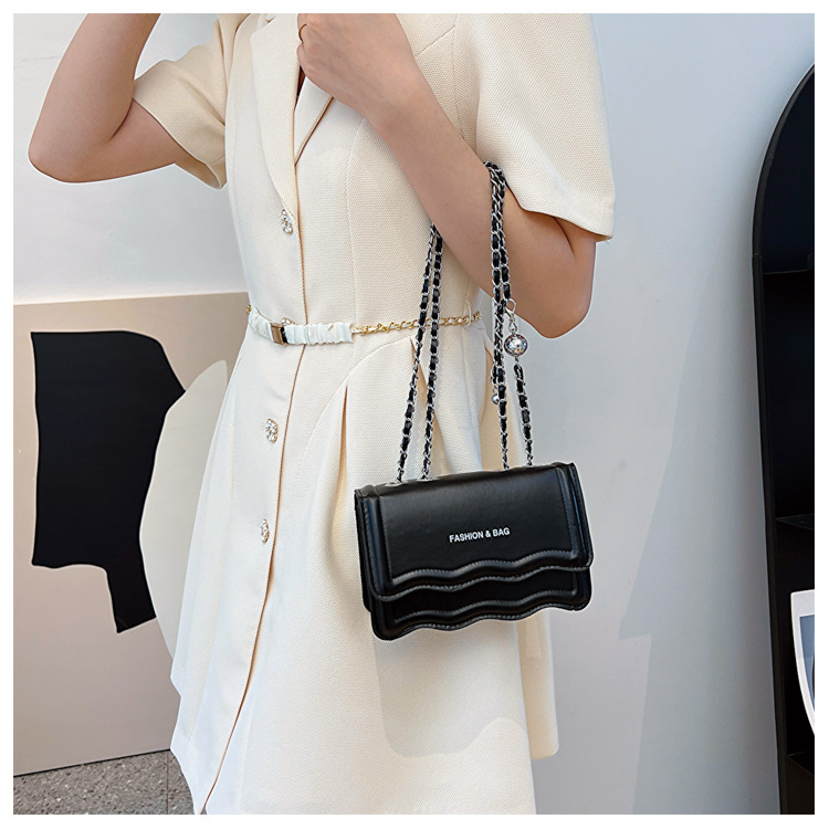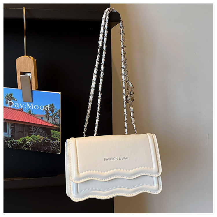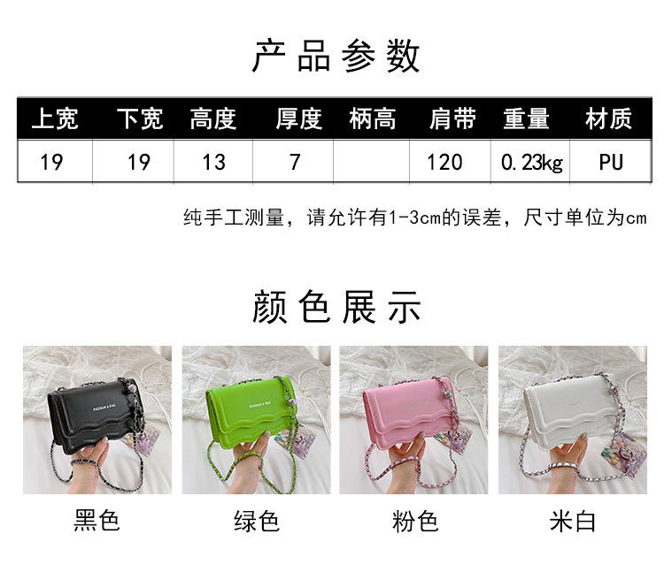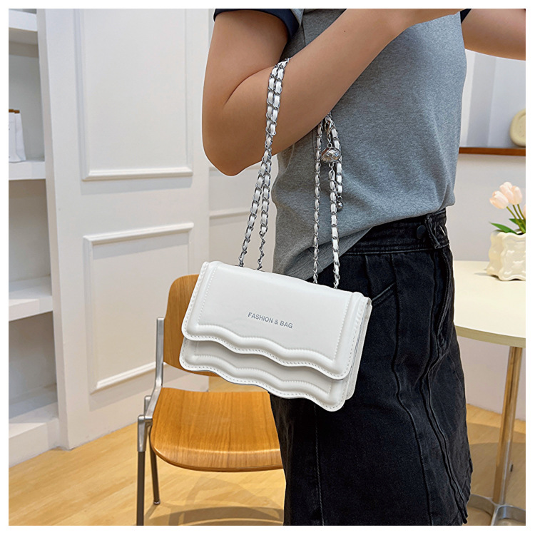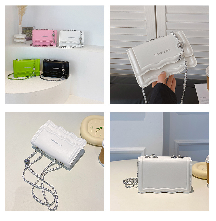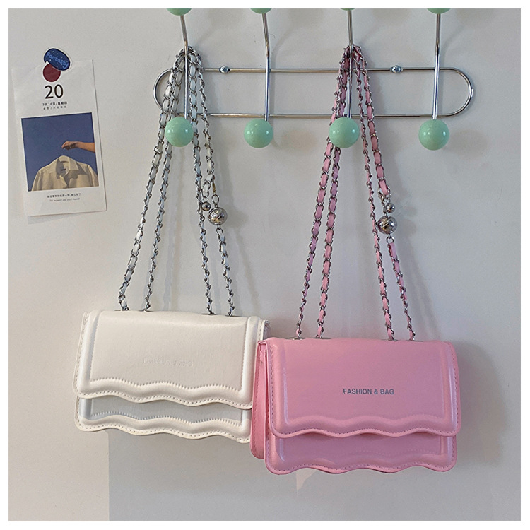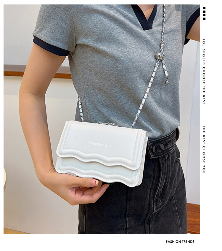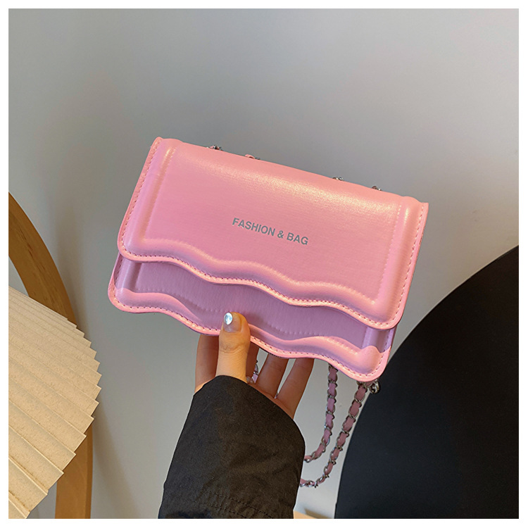 波の紋様のファッションの質感はシンプルで純色のチェーン2023夏の新型のキャンディー色のシングル肩の斜め掛けの小さい方の包みの女性です。