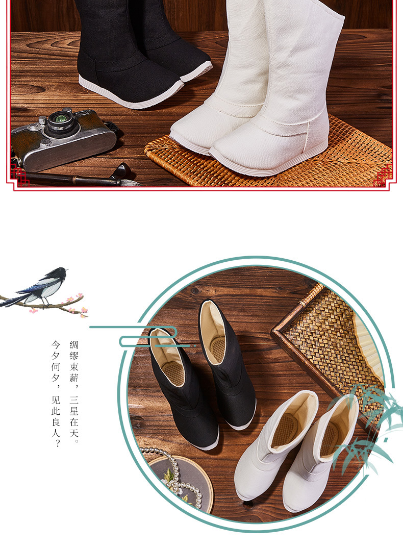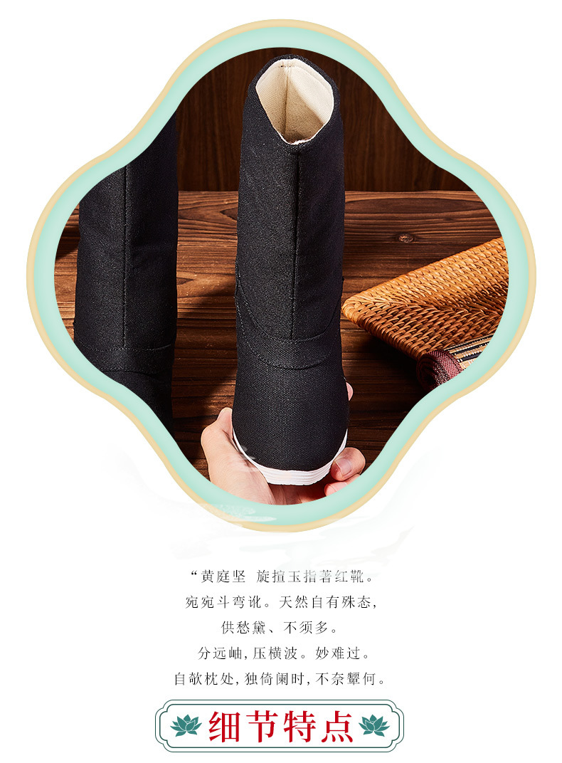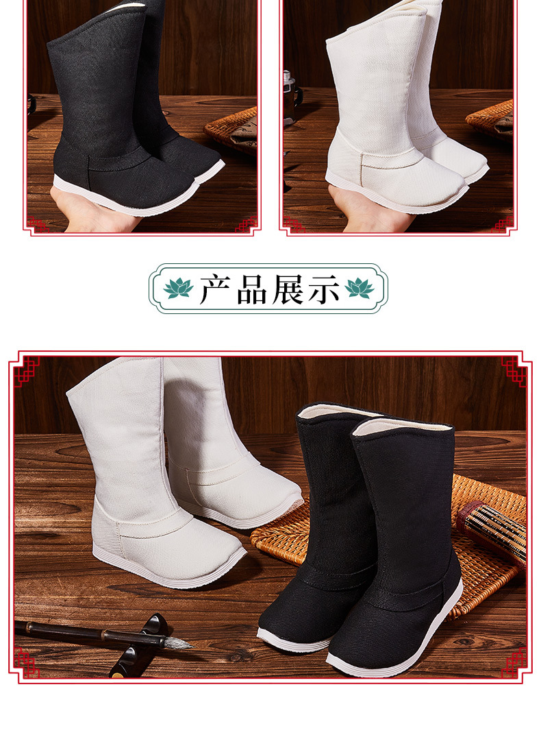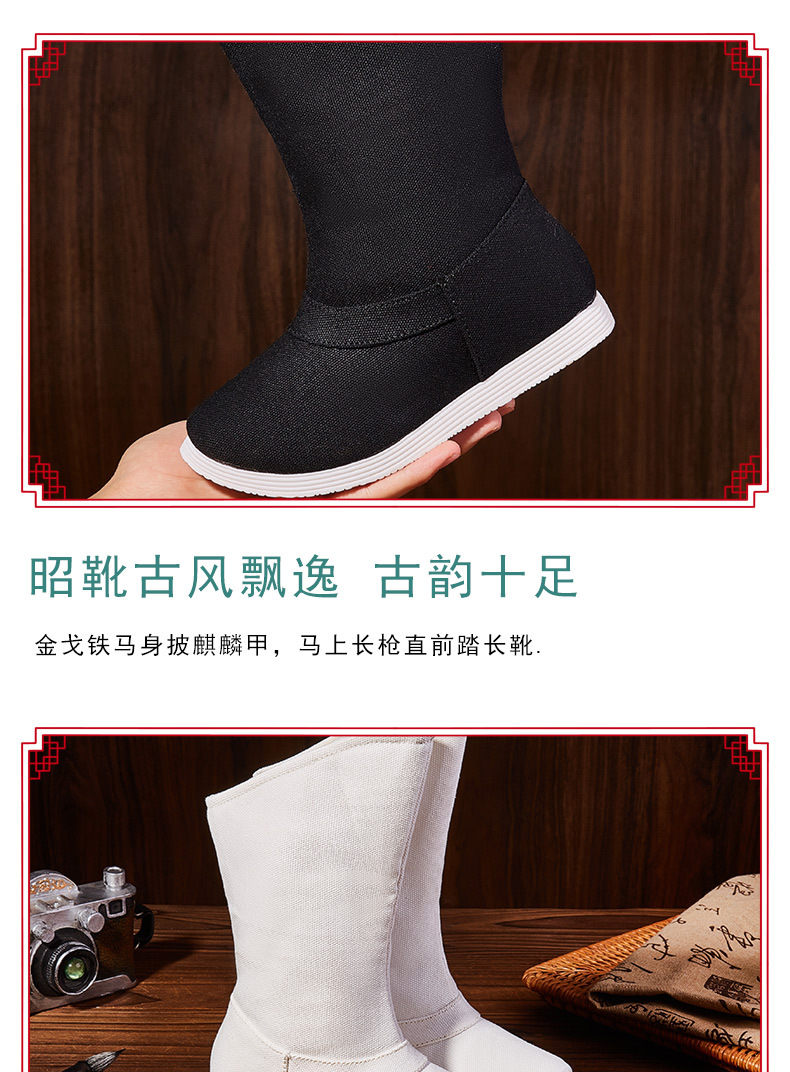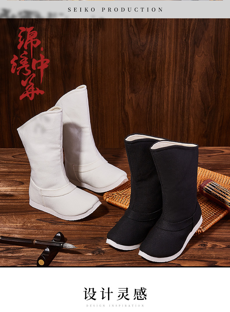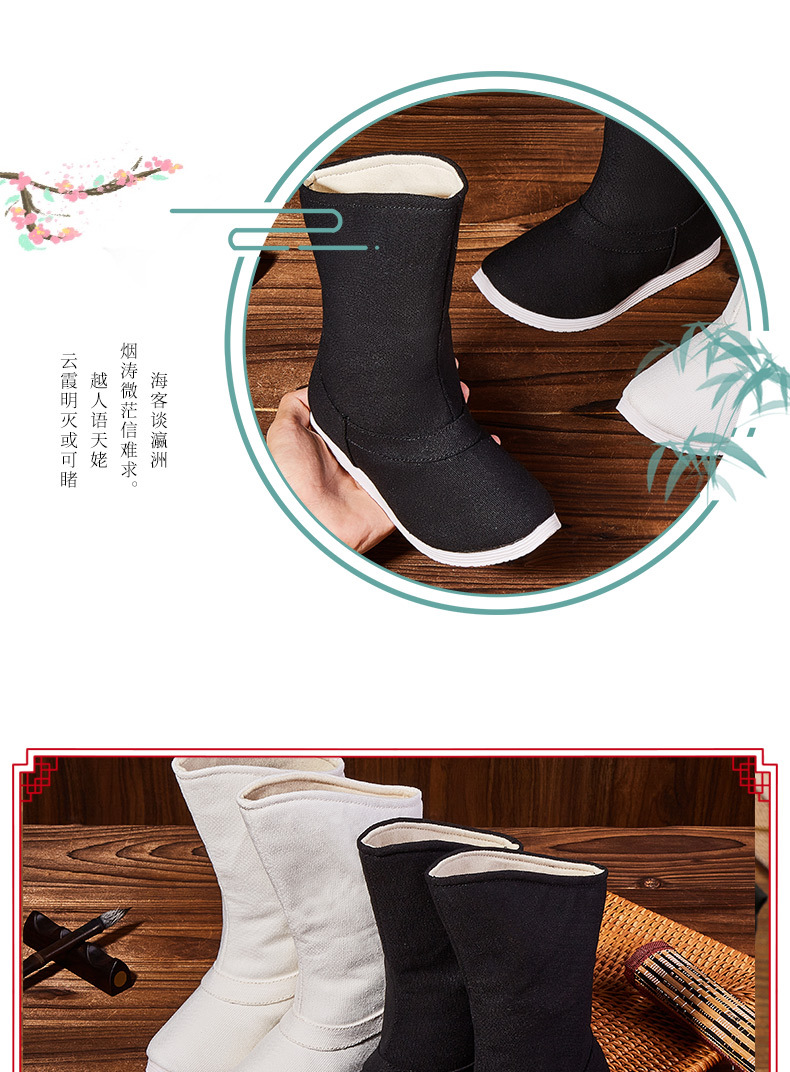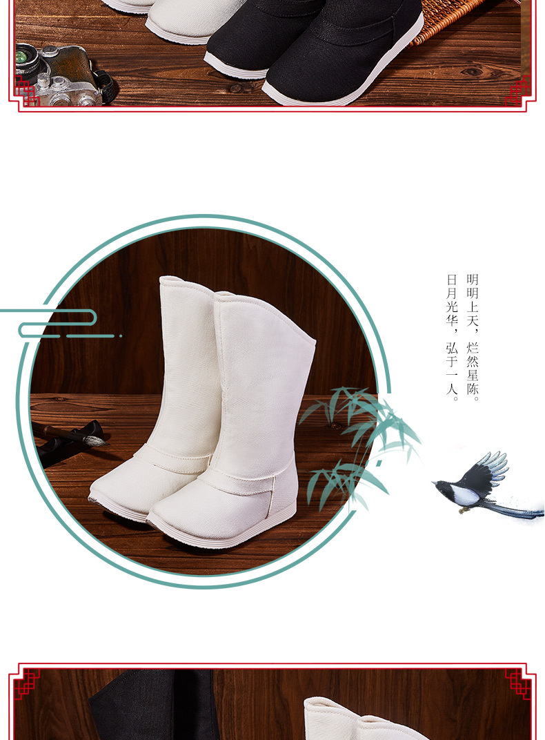 新款现货镜面黑色白鹅棉布童靴民族风家居户外古风儿童
