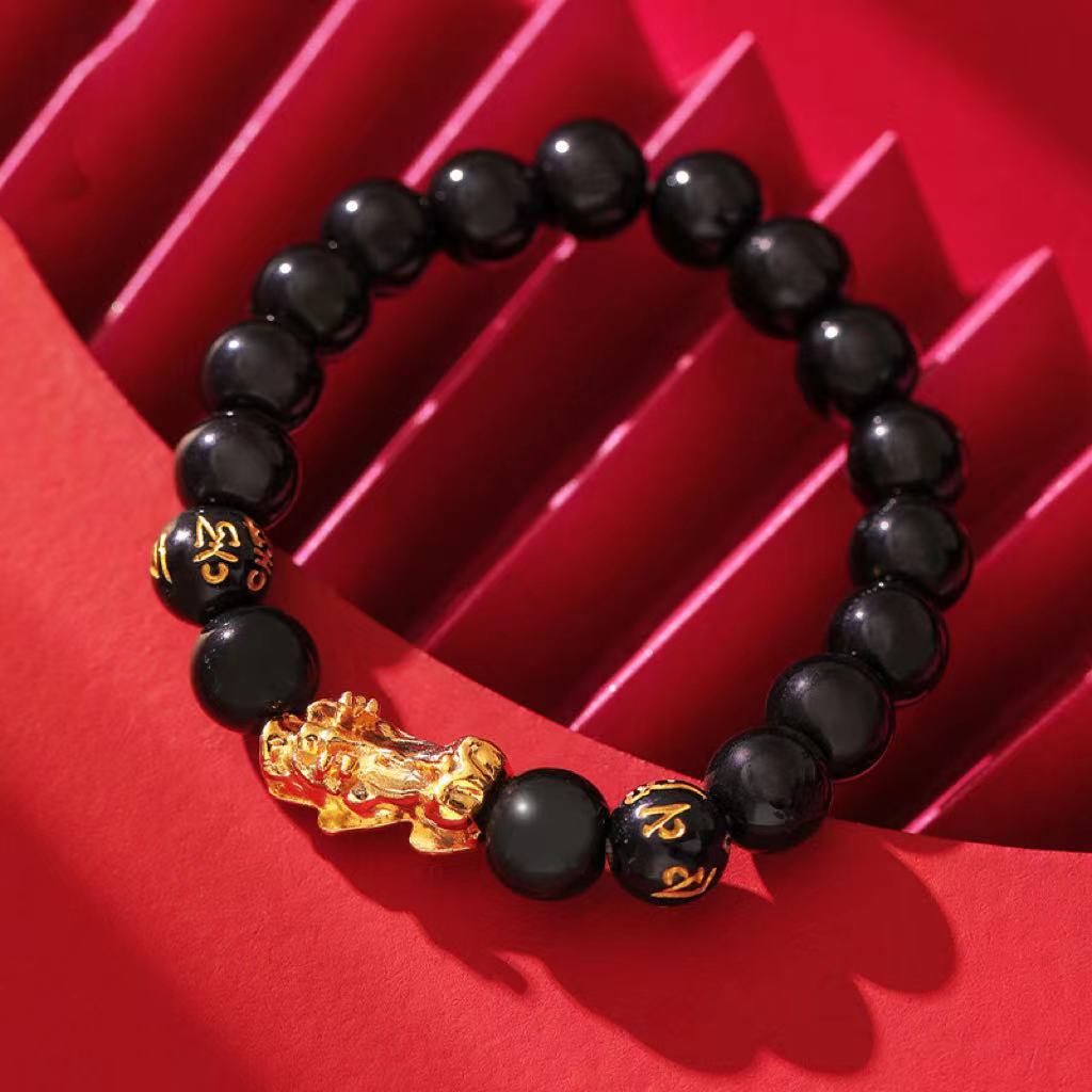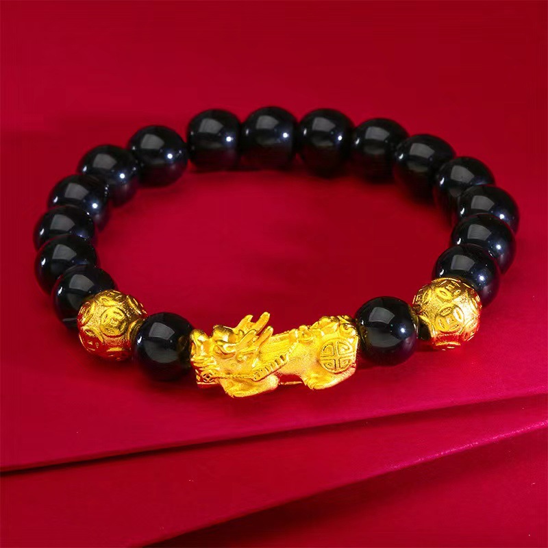 ベトナムサンドゴールド貔貅ブレスレット男性と女性のための模造 3D ハードゴールド 99 黒曜石ピチュー仏ビーズジュエリー長持ちジュエリー