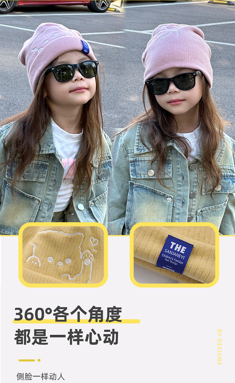 25 新型二重刺繍子供帽子春秋ベビー帽子秋冬耳当て付き男女兼用丸型プリント帽子