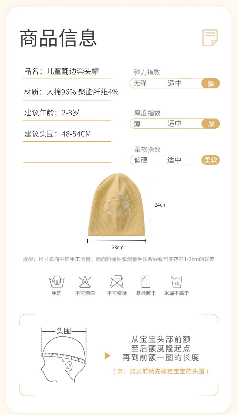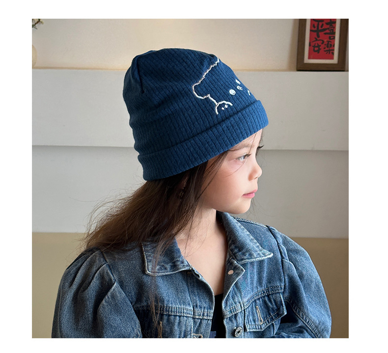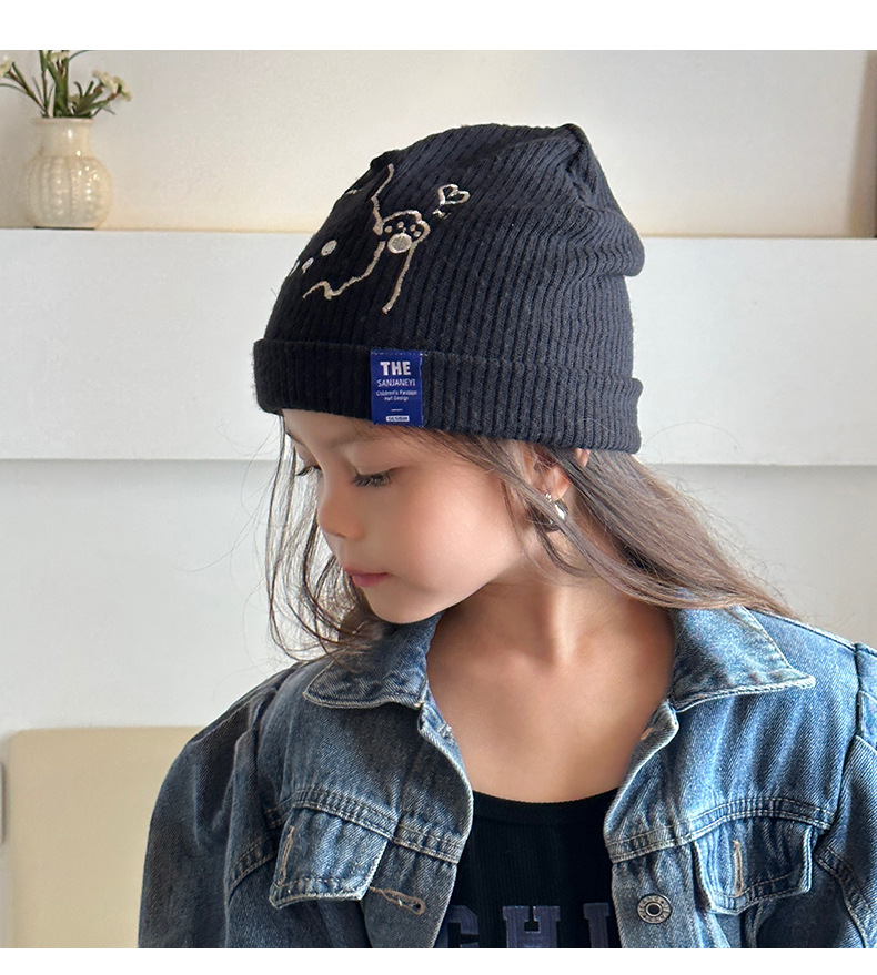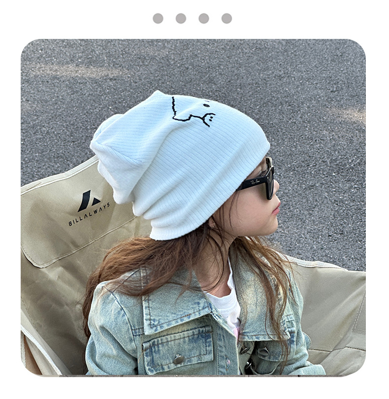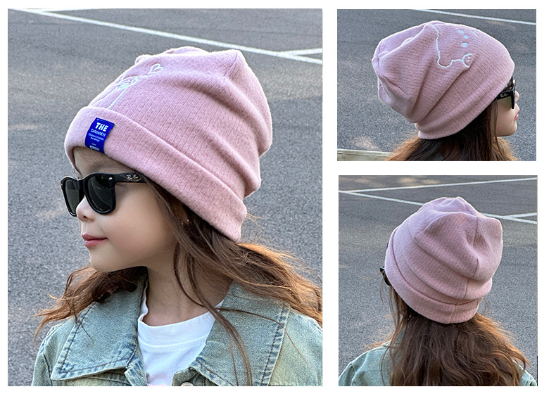 韩系儿童套头帽洋气百搭秋冬季宝宝护耳男女童保暖翻边刺绣冷帽子