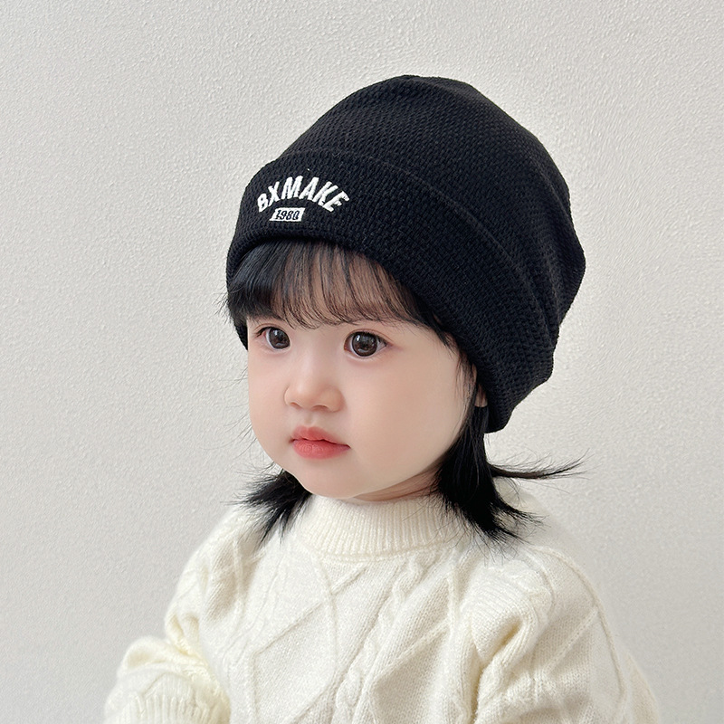 25秋冬新作子供用折り返し刺繍文字入りプルオーバーハット、赤ちゃんのお出かけ用防寒耳当て付き二重帽子