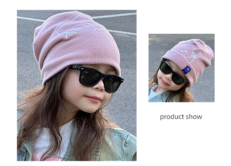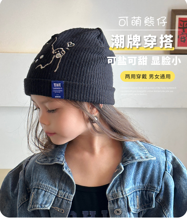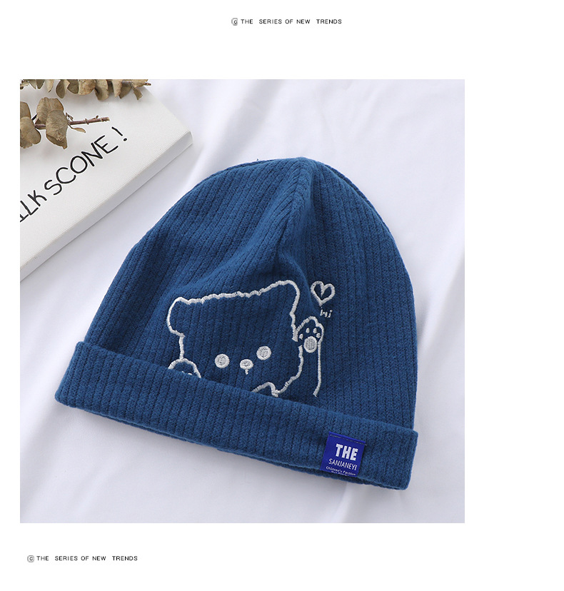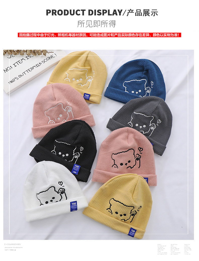 韓国版新型二重hi刺繍かわいいベアーのニット帽秋冬帽子子供冬保温カバー