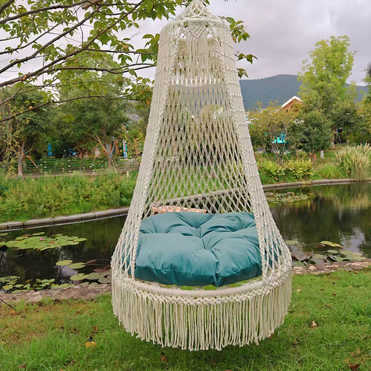 北欧スタイルのハンギングバスケット屋外綿ロープハンギングチェアバルコニーゆりかごチェア屋内B&Bタッセル付きクッションスイングチェア卸売
