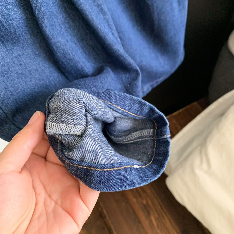 春と秋の男女の赤ちゃんのゆったりとした洋気のデニムのワンピースの乳幼児の長袖のバックパンツは外に出て服を着ます。