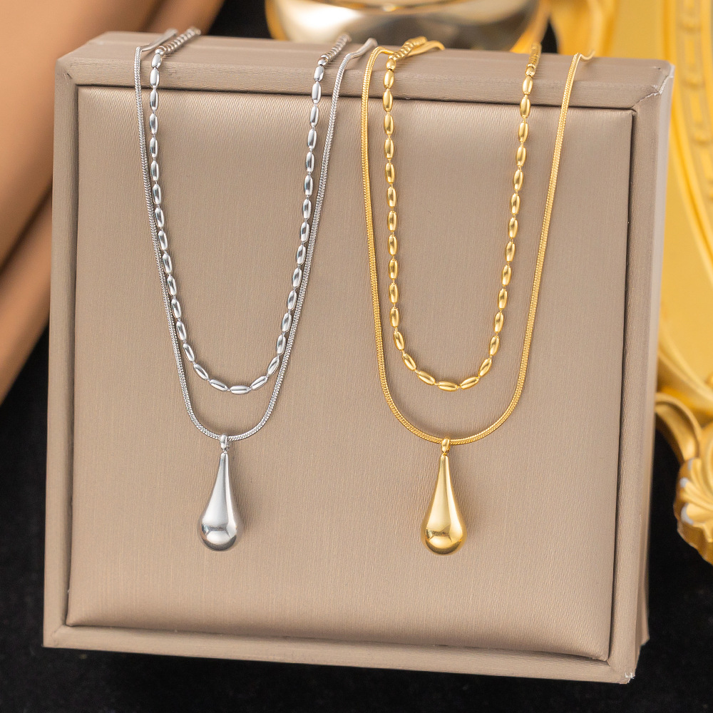 ダブルチェーンのチタン鋼の水滴のネックレスの女性のデザイン感の小さい大衆の復古的な個性のシンプルな組み合わせの気質の首の鎖の鎖骨の装飾品
