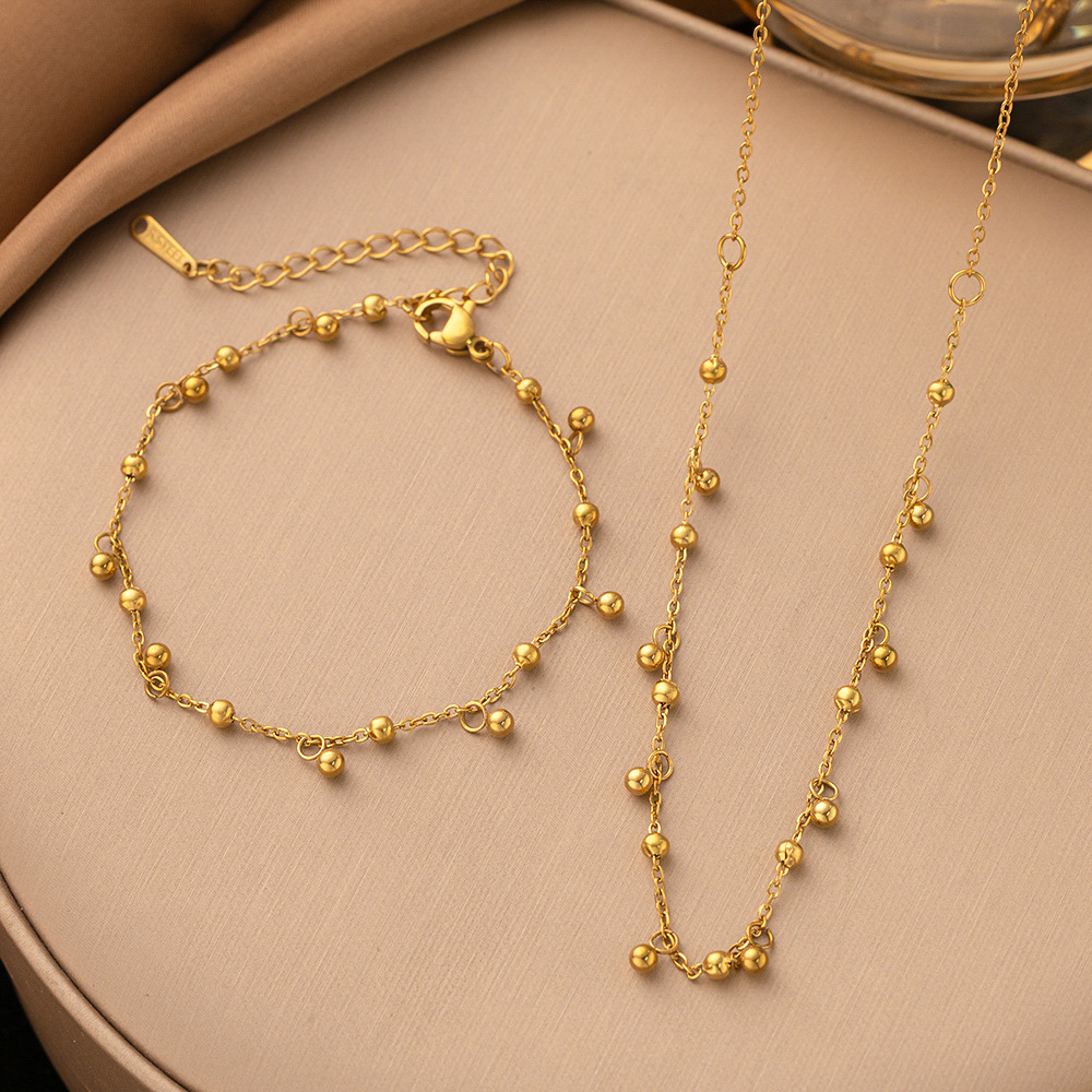 跨境钛钢不掉色简约圆珠项链女百搭轻奢小众极简设计锁骨链饰品女