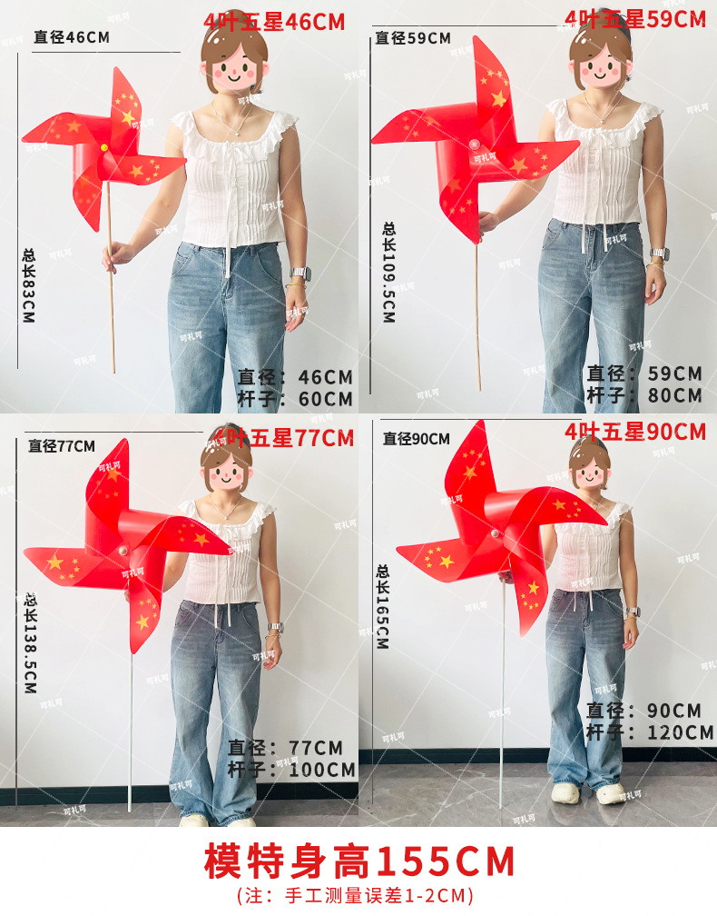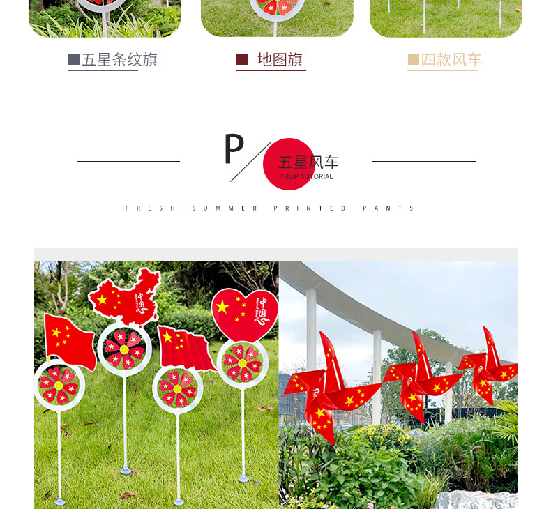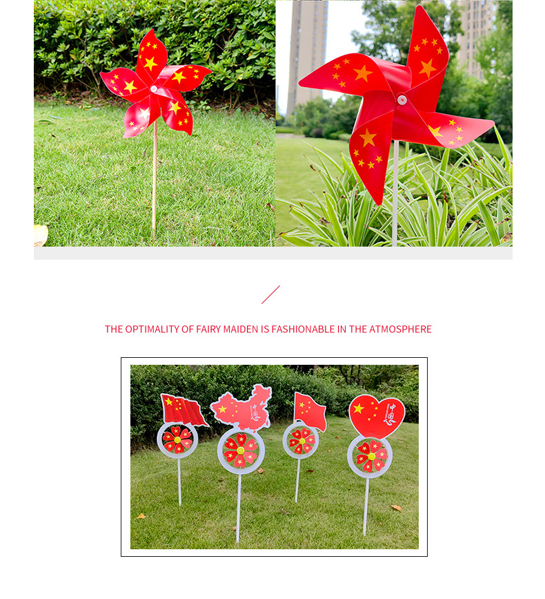 国慶節戸外装飾祝典祝日装飾戸外五星ネット赤風車戸外四葉赤い旗風車