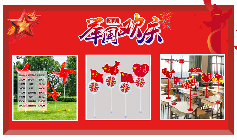 国慶節装飾五星紅旗風車子供手作りdiyデパート屋外シーン配置幼稚園玩具