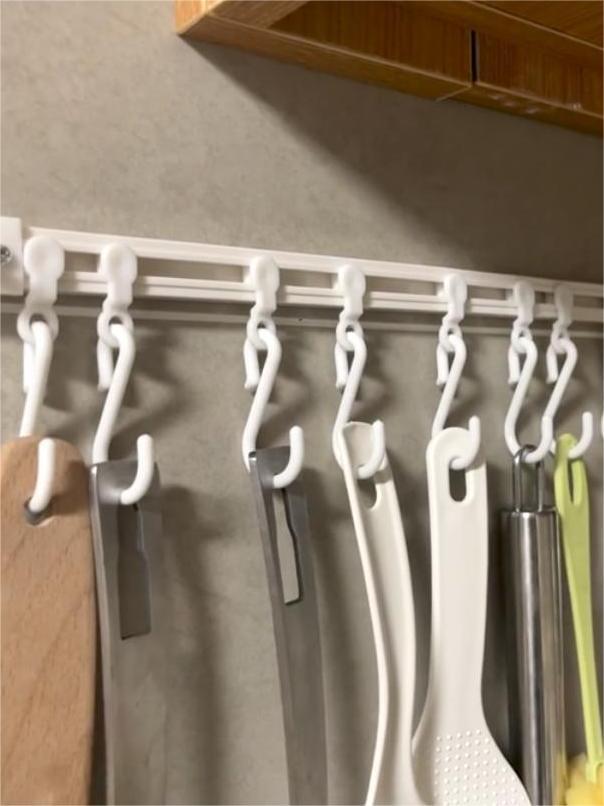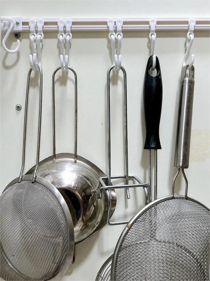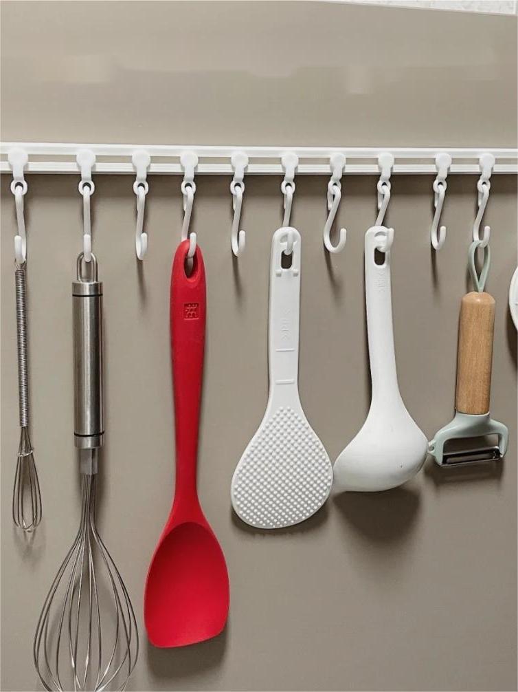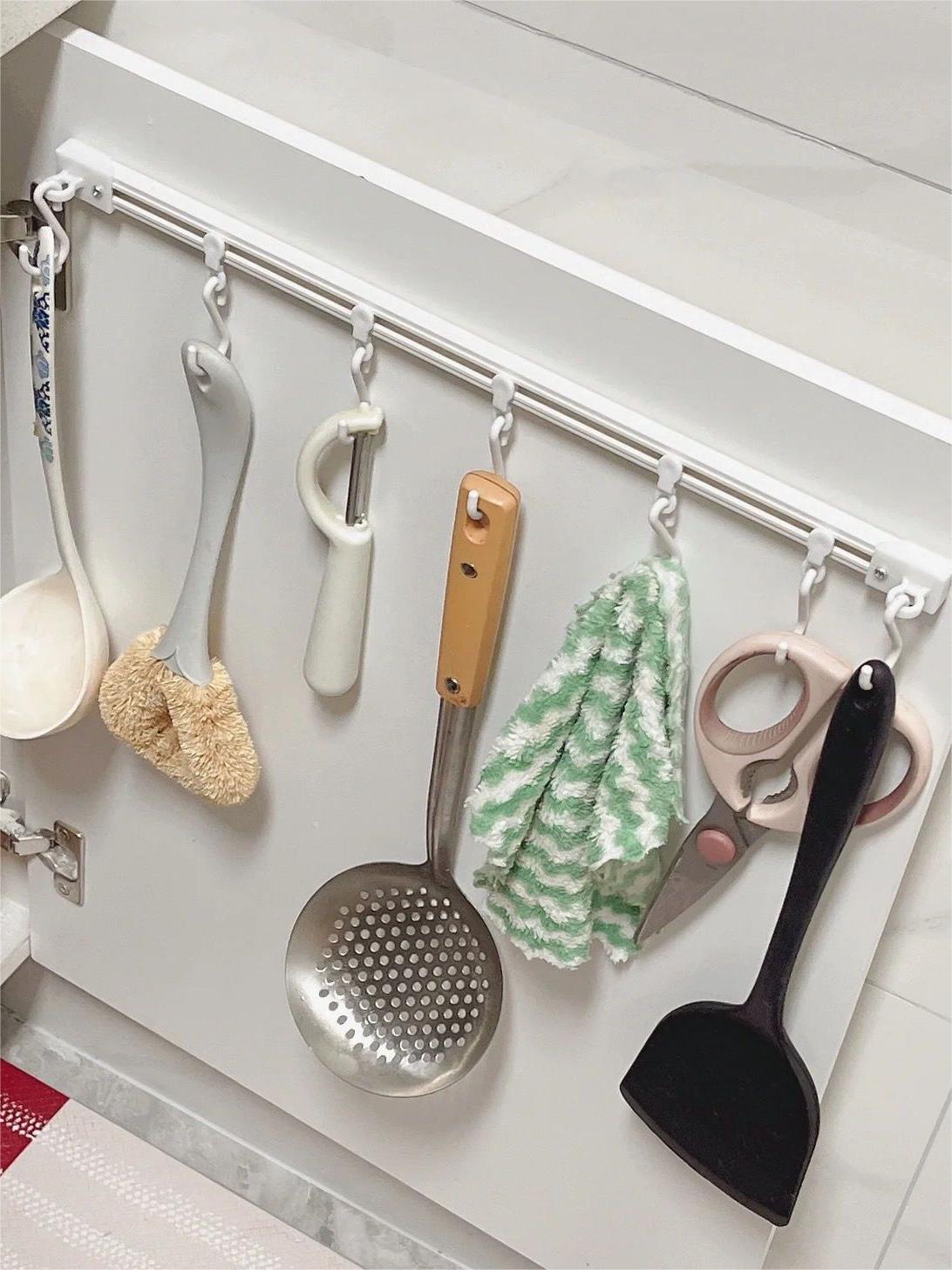 スライドレールフック厨房収納神器ドア後にフックを固定します。穴を開けないでください。一列にラックを掛けます。