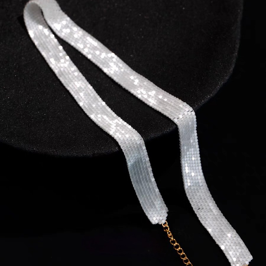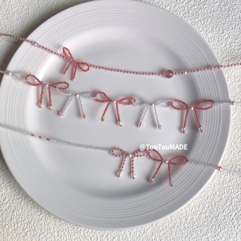 手は蝶結びの短いネックレスを作ります。