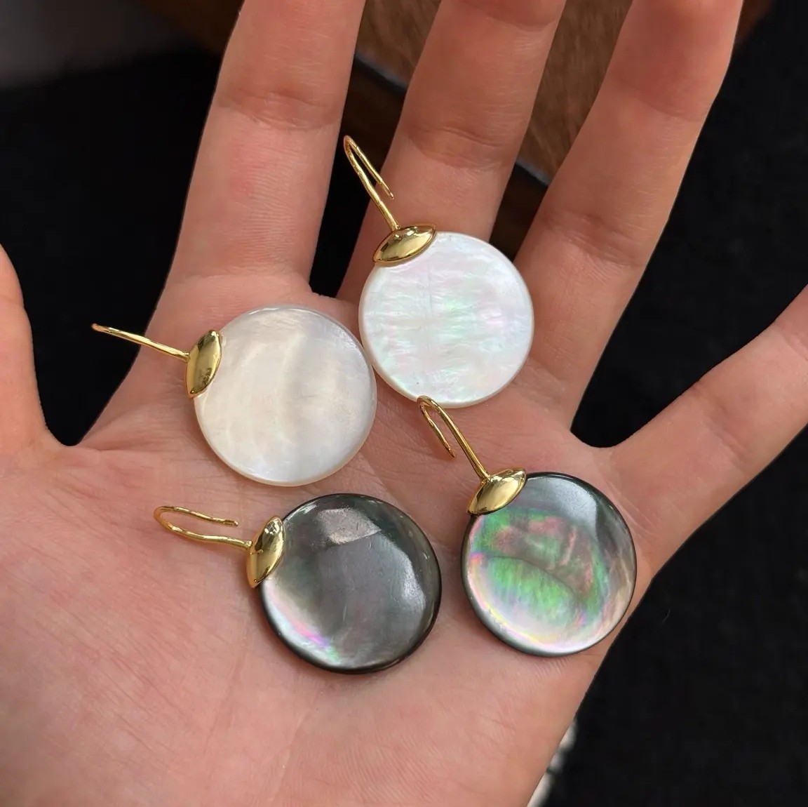 黄铜镀金贝壳耳饰巨亮小灯泡!圆形贝壳耳钩气质简约百搭通勤耳环