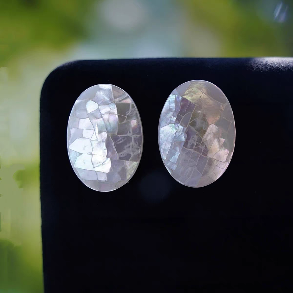 白蝶貝天然貝殻イヤリング氷ひび割れテクスチャハイエンドシンプルな楕円形気質イヤリング人気のイヤリング卸売
