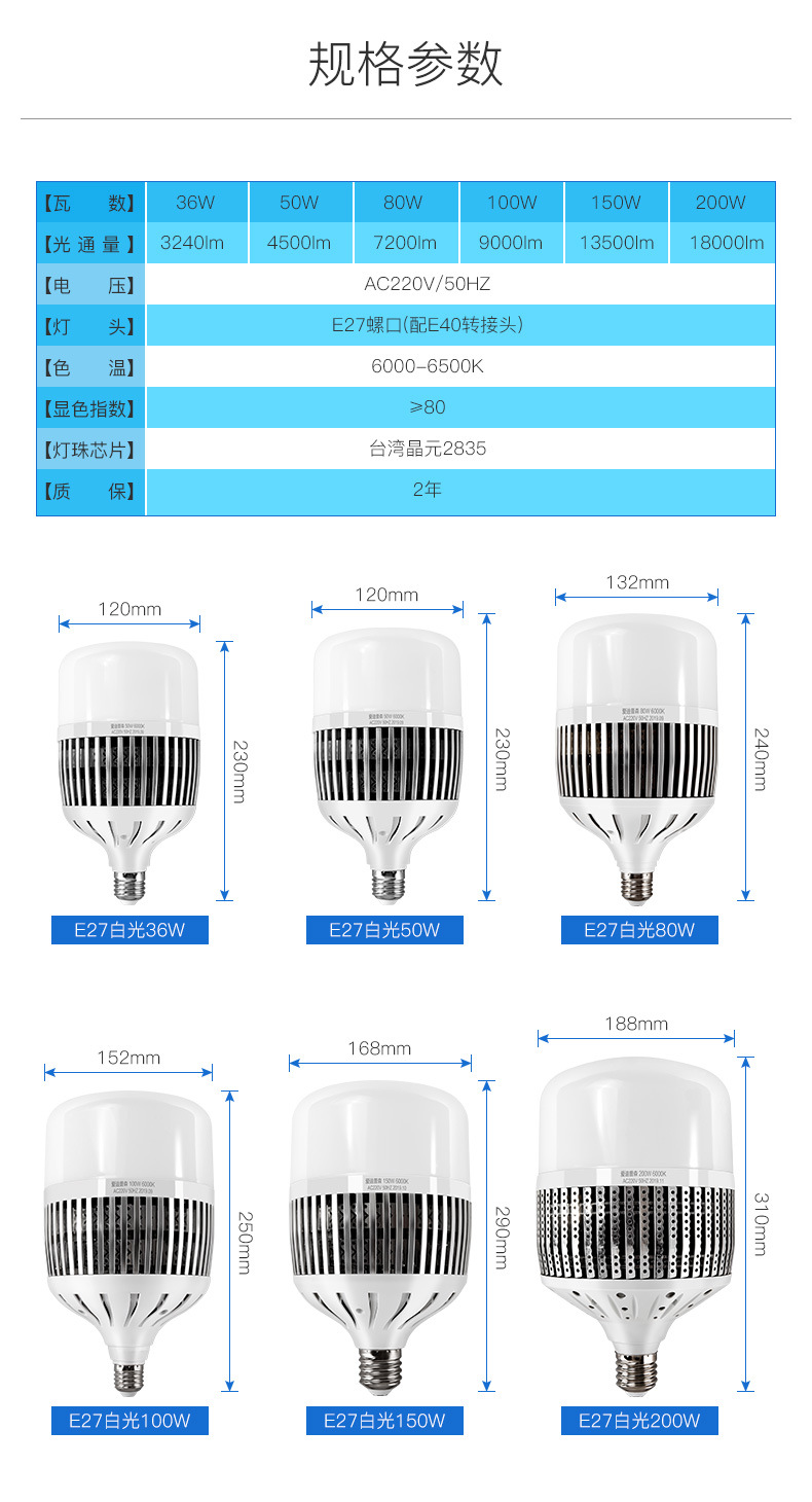 パワー 36W/E27ねじ口,50W/E27ねじ口,80W/e 27ねじ口,100W/E27ねじ口,150W/e 40ねじ口,200W/E40ネジ