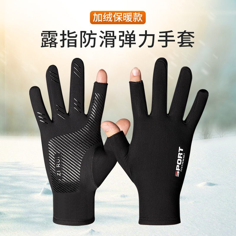 ベルベット二本指保温手袋滑り止めタッチパネル手袋アウトドアスポーツベルベット手袋冬保温サイクリング