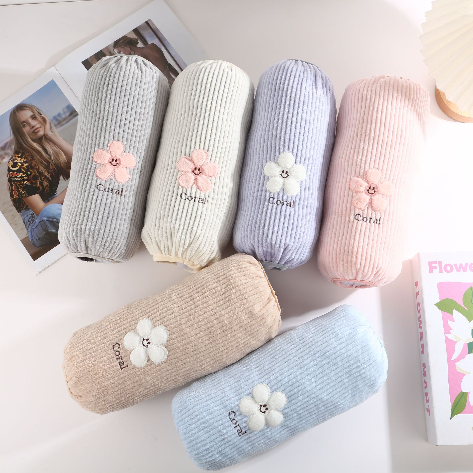 秋冬袖套男女加大加长灯芯绒刺绣笑脸花羽绒服家务防污防脏套袖头