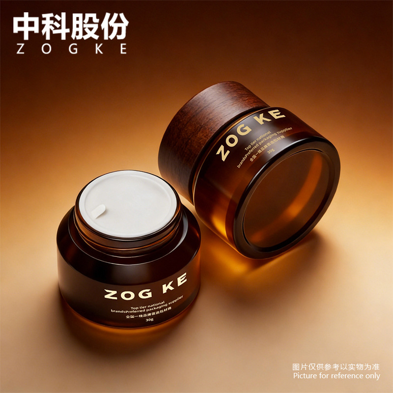 メーカーの創意モデルの茶色の光を避ける30g 50gのパンの蓋と高霜瓶の化粧品のアイクリームのガラス瓶は印刷できます。