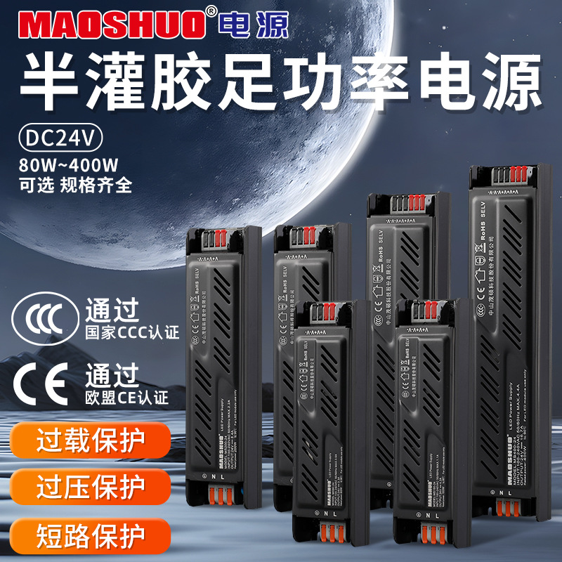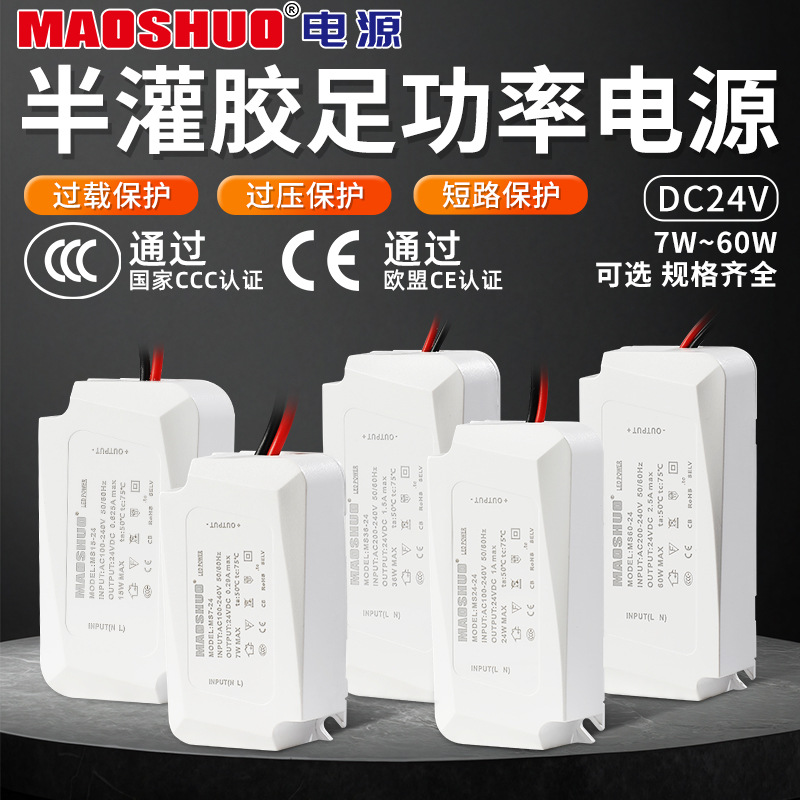 新款LED半罐胶电源足功率过载保护照明专用电源批发DC24v灯带电源