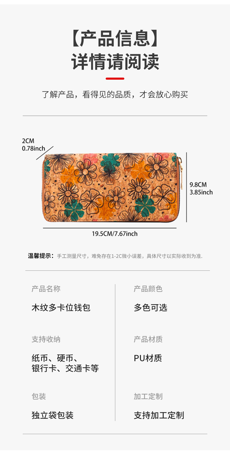 木目調多機能ポータブルバッグ、大容量、複数カードスロット、レトロ木目調レディース長財布