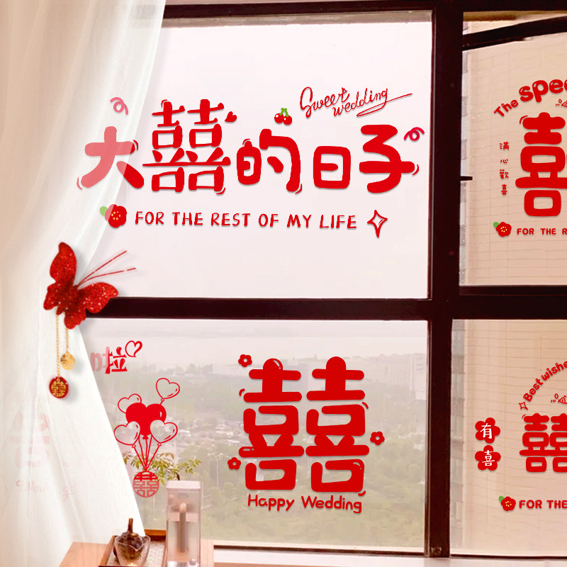 静電気貼付結婚専用喜字貼付結婚室ガラス窓配置シール窓花の字結婚式の客間装飾
